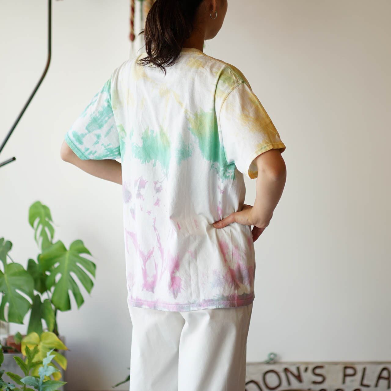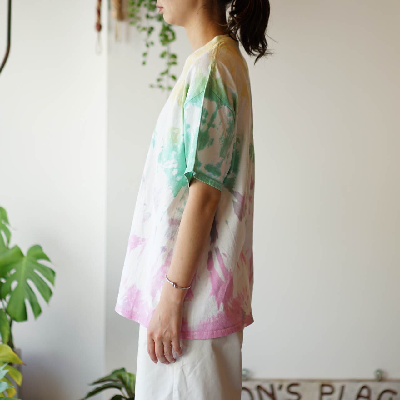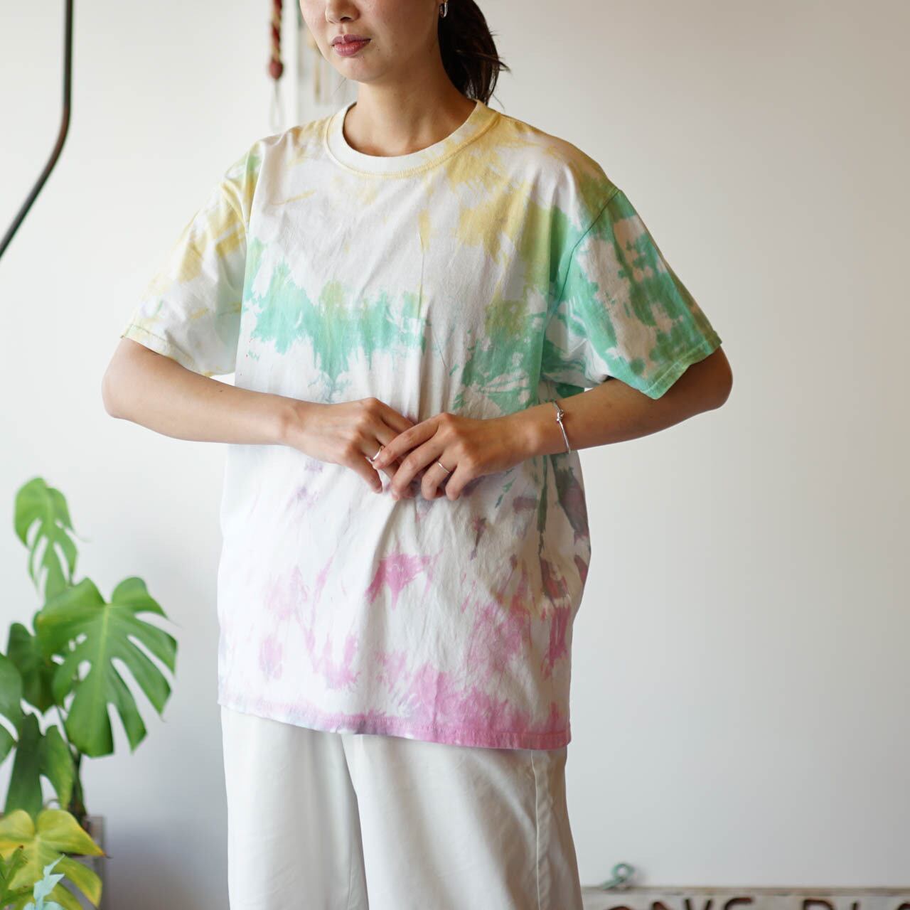 街で着るのに派手すぎないタイダイTこちらです。ペールトーンな優しいタイダイ。