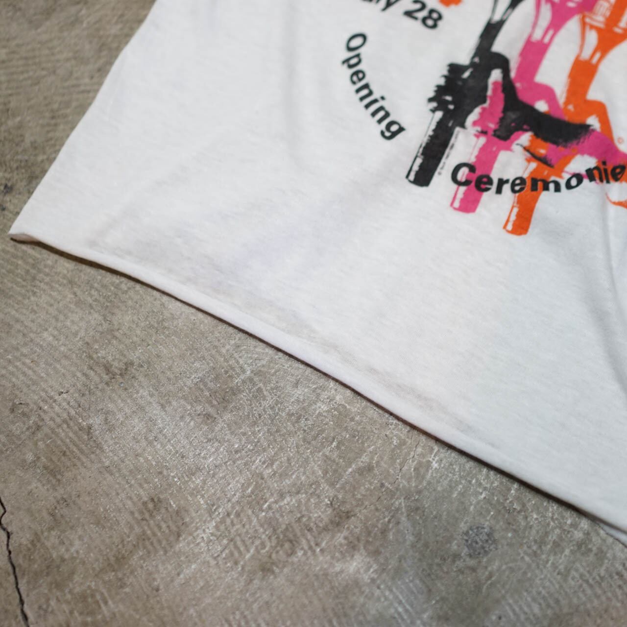 1984年に開催されたロサンゼルスオリンピックのプリントTシャツ。出場選手の一員になったかのような勇ましい気持ちになれる特別なTシャツです。ボトムは黒のパンツを合わせてかっこよく。