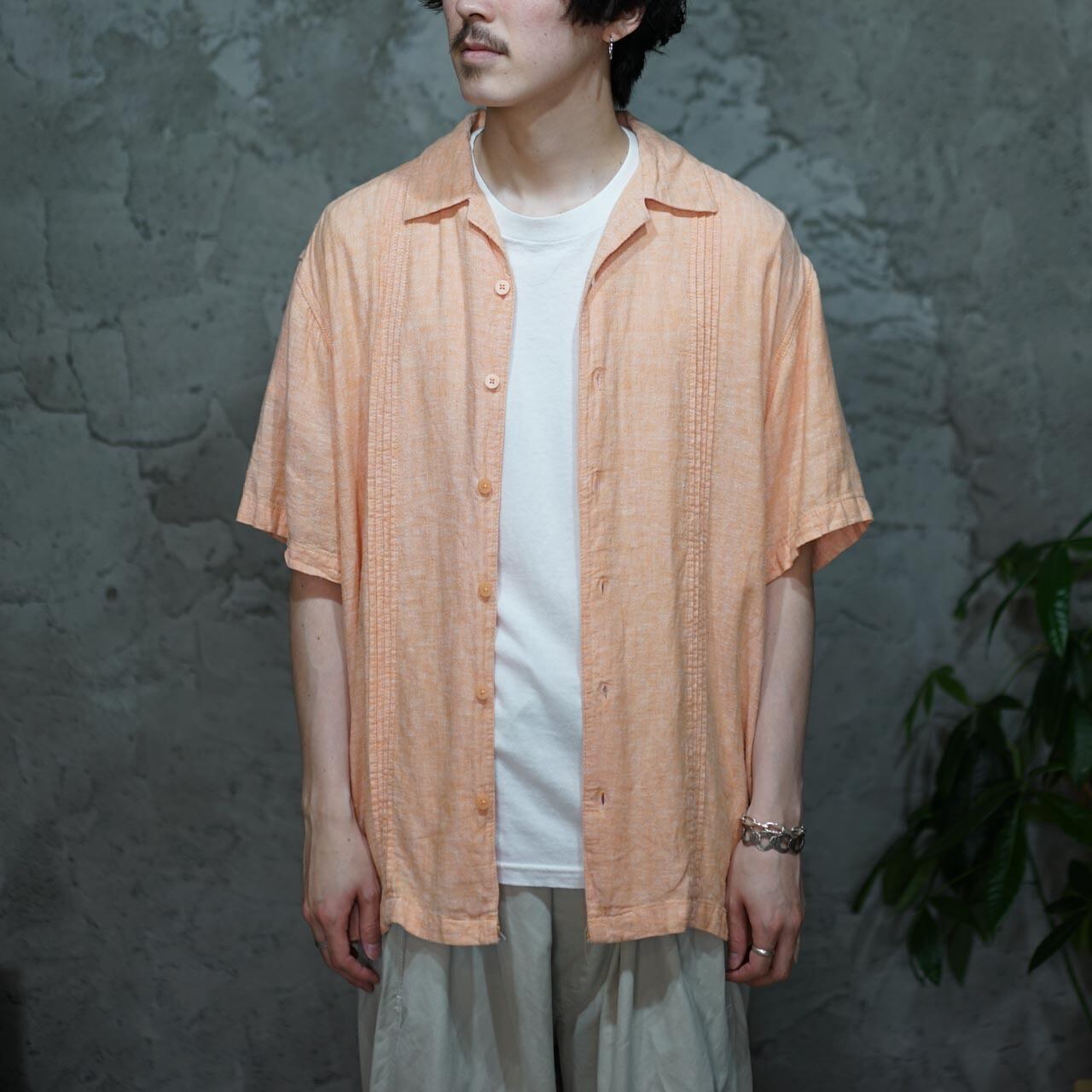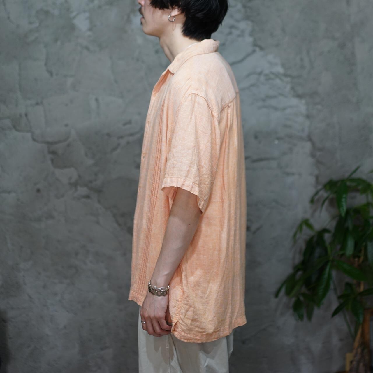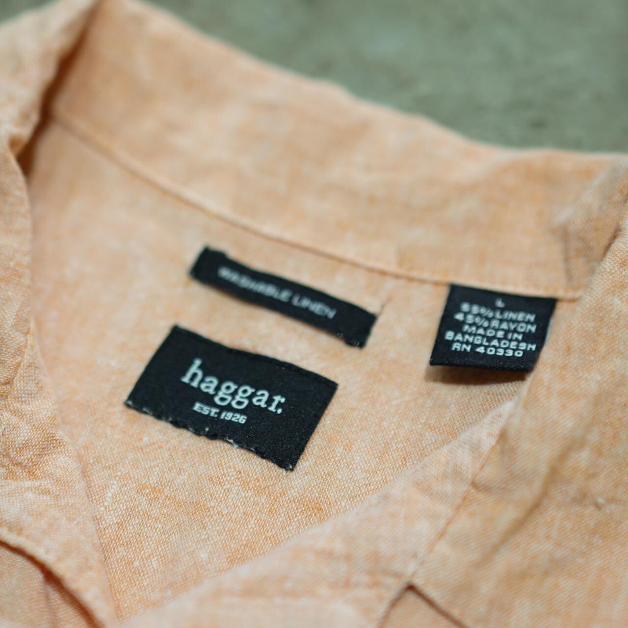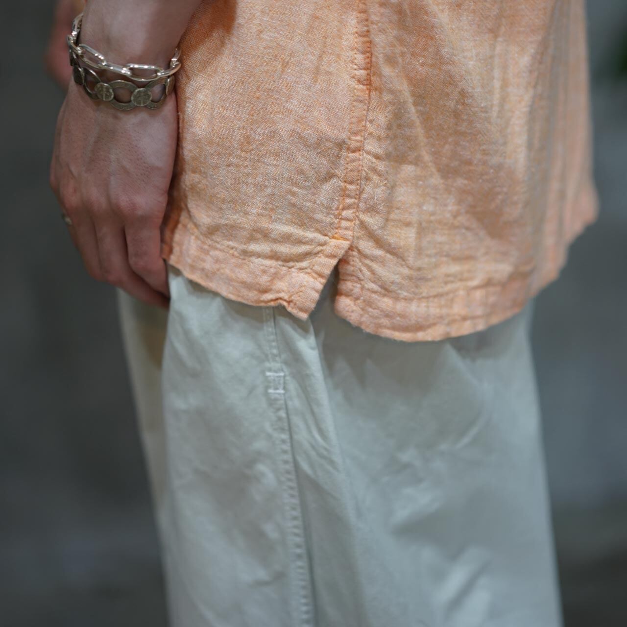 原色のオレンジではないため抵抗なく羽織れるシャツです。