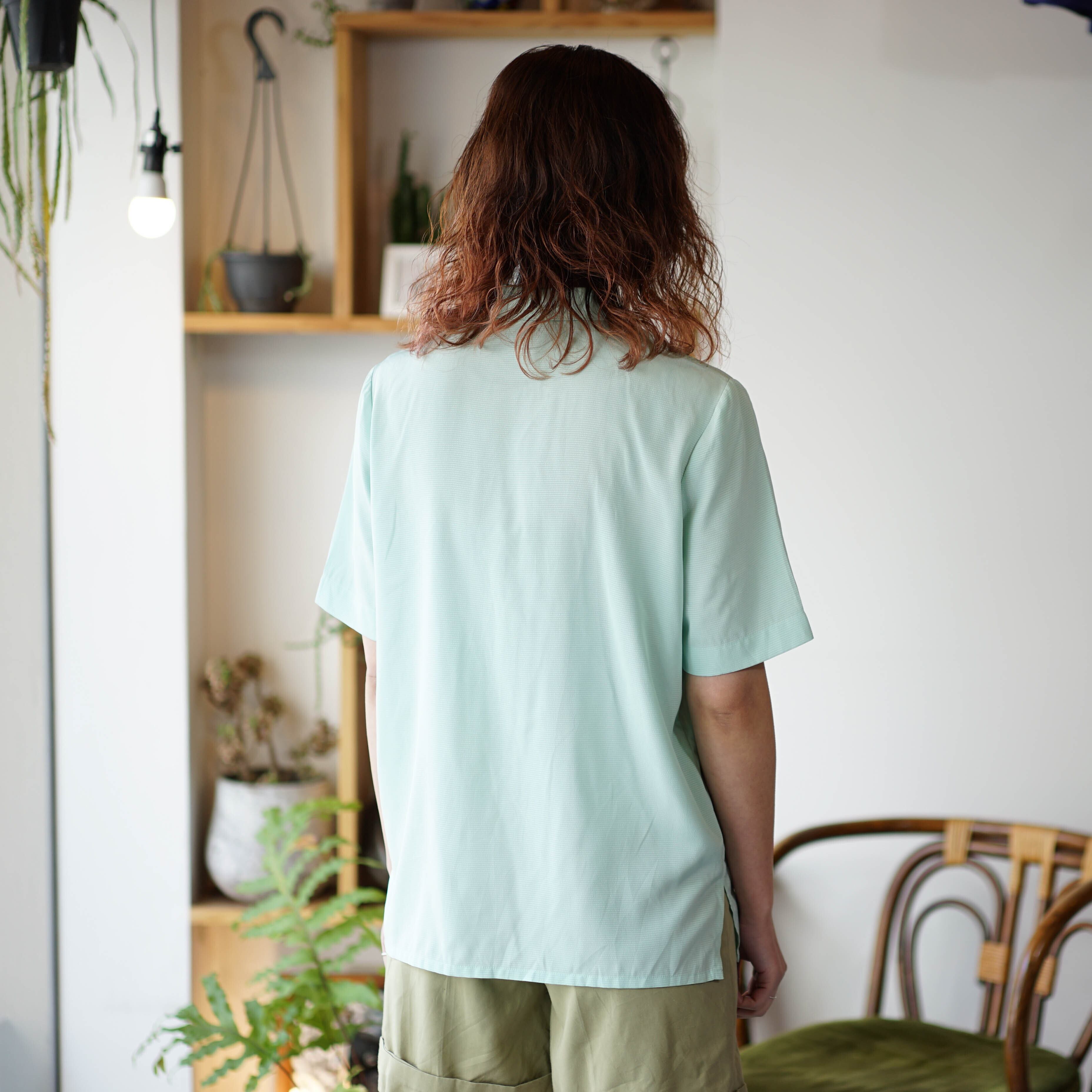 春夏は明るい色が着たくなる!ということでおすすめなパステルグリーンの半袖シャツ。薄手なのでボトムにインしてスッキリ着ることも出来ます。