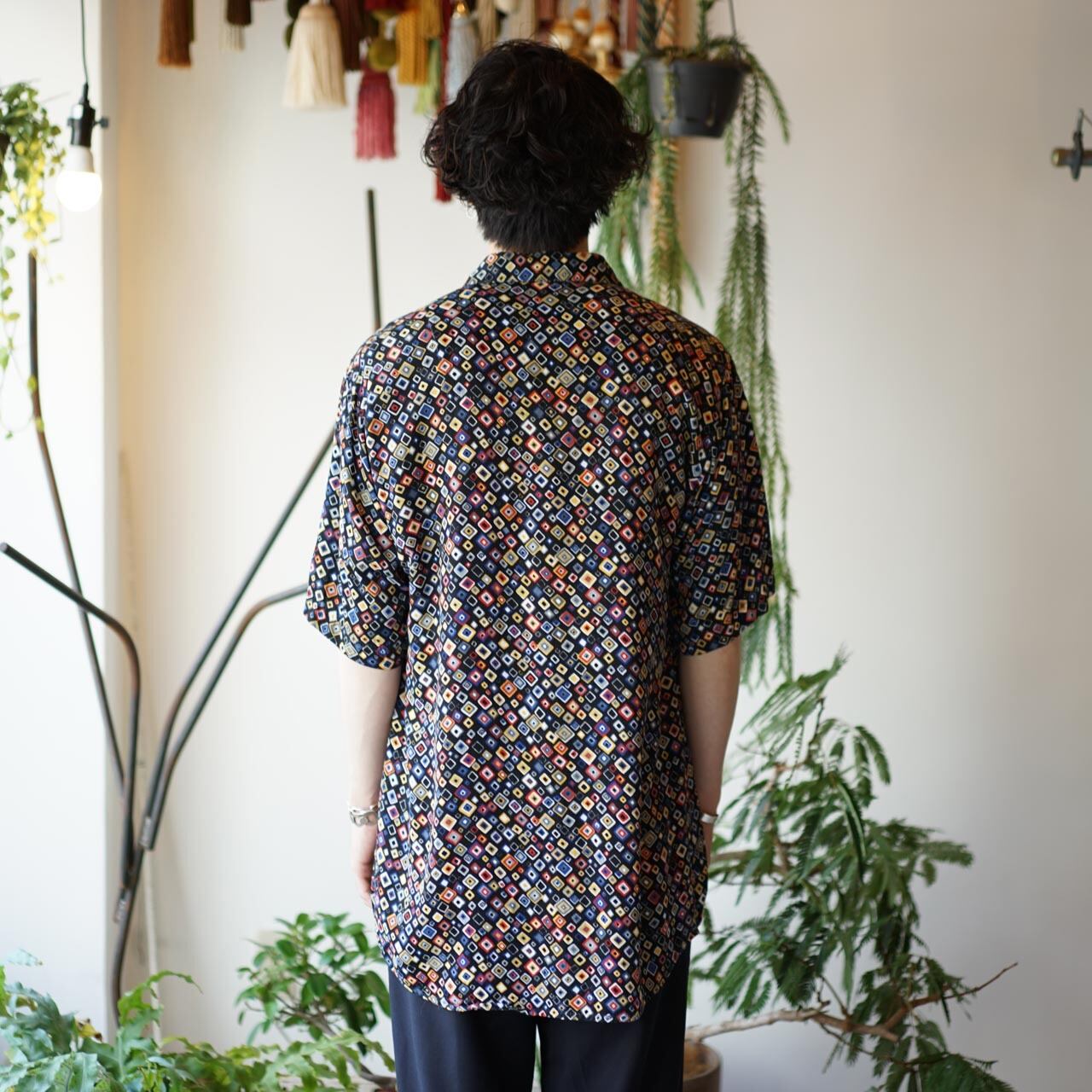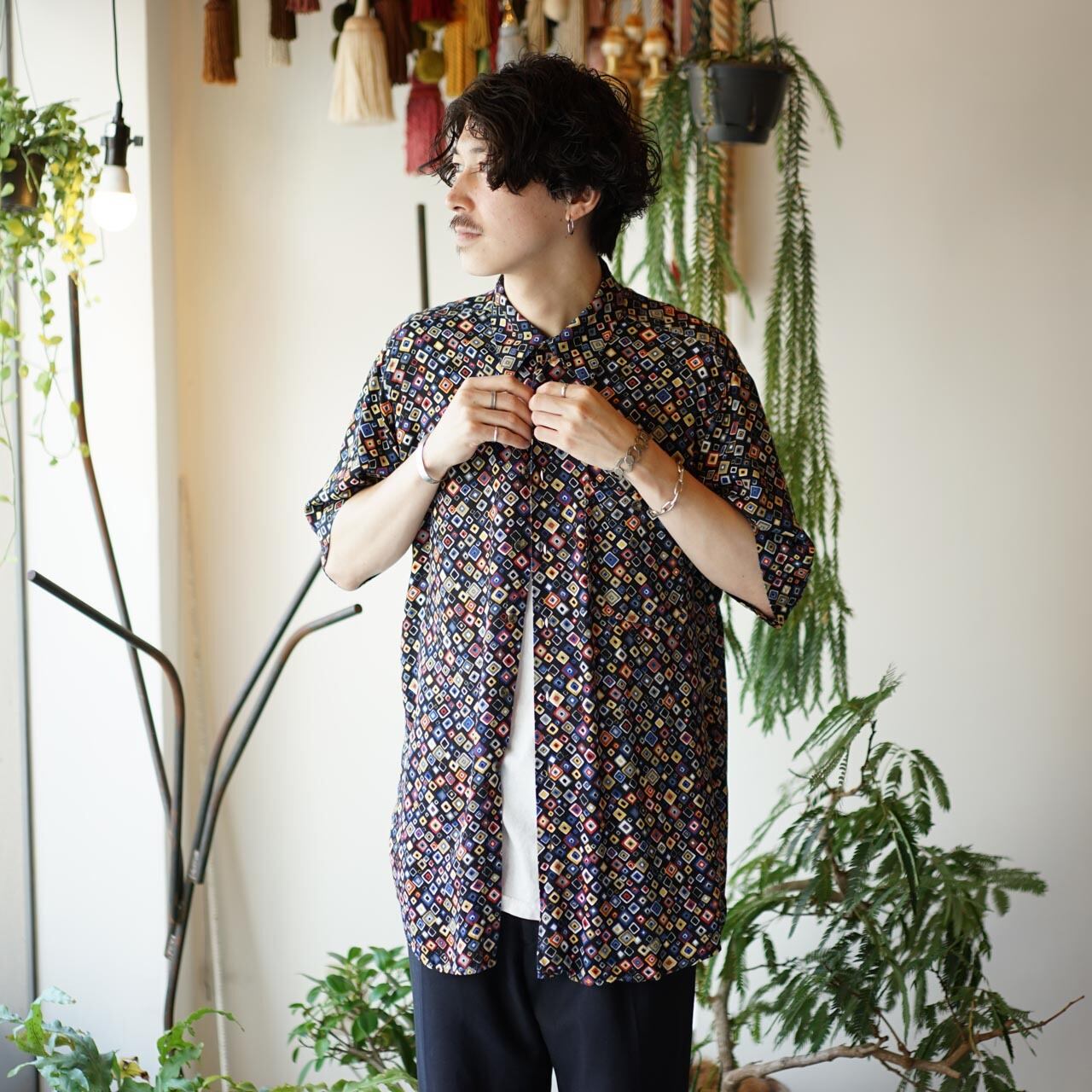 ユーロ 総柄 半袖 シャツ(ブラックトーン)