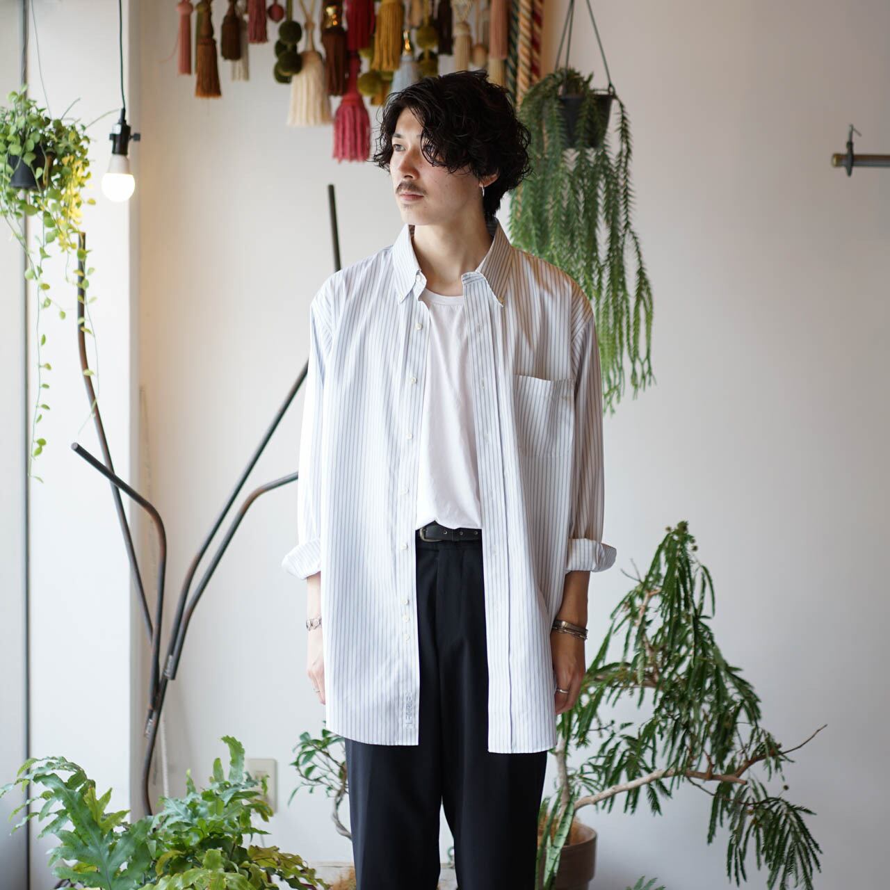 老舗のブルックスブラザーズの長袖シャツ。春夏時期に、前を開けて羽織として使うのにぴったりです。