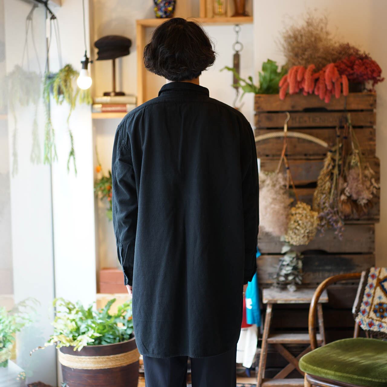 熟練された職人の手により後染め加工を施したグランパシャツ。