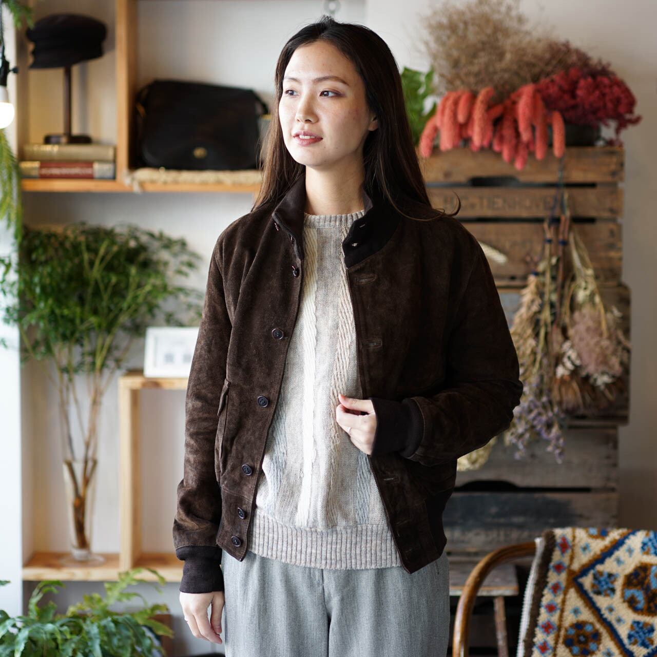 ユーロ リアル スウェード ジャケット(ブラウン)