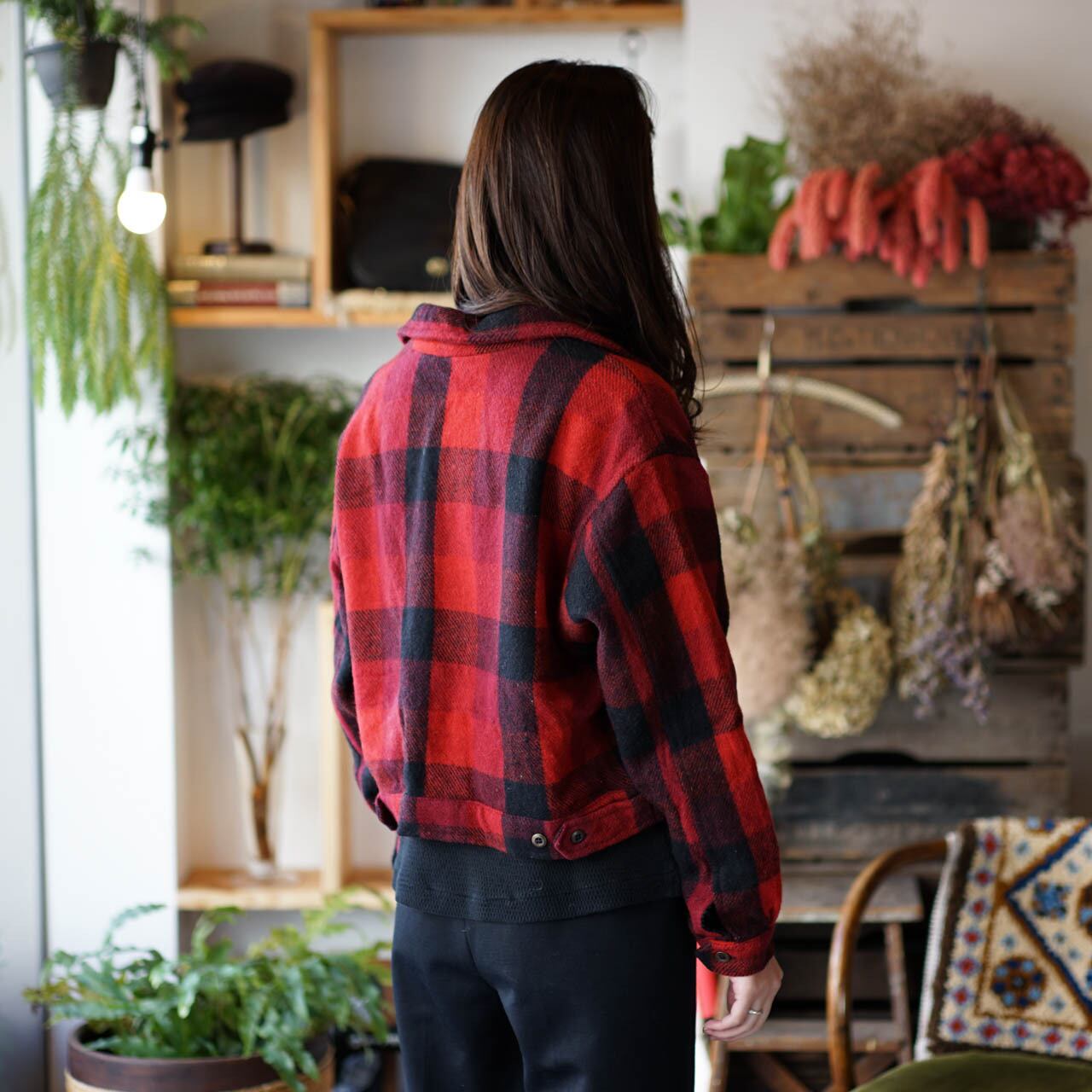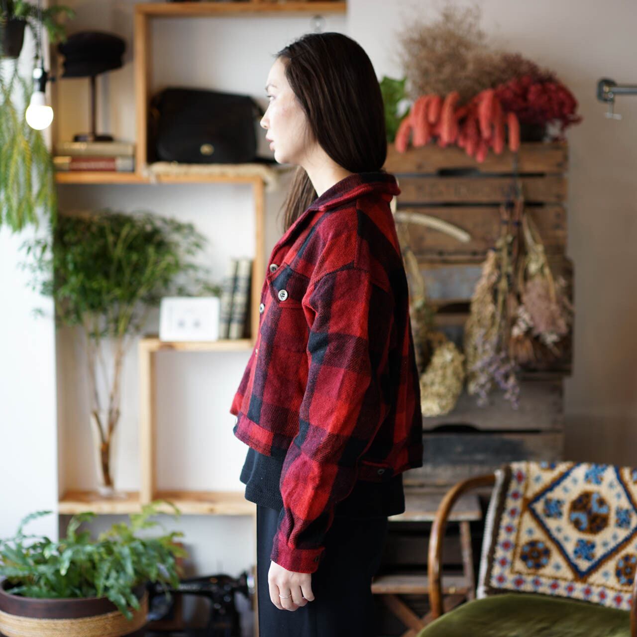 ブロック チェック ウール ジャケット(ブラック × レッド)
