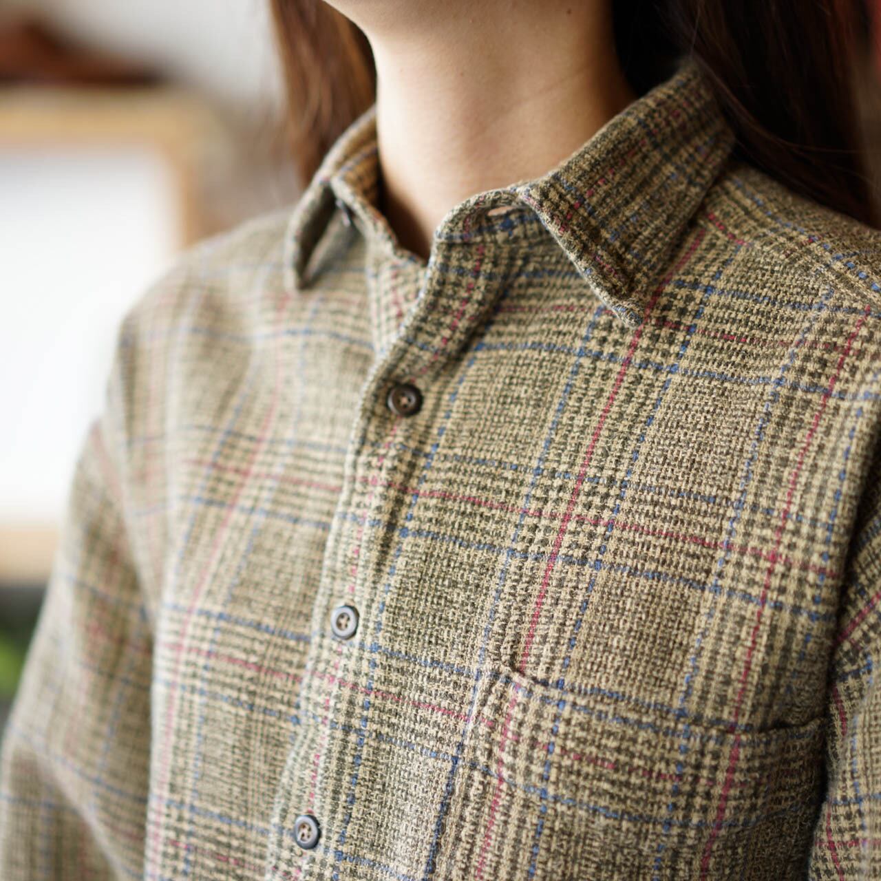 チェック柄 ヘビー フランネル シャツ(ブラウンベース)