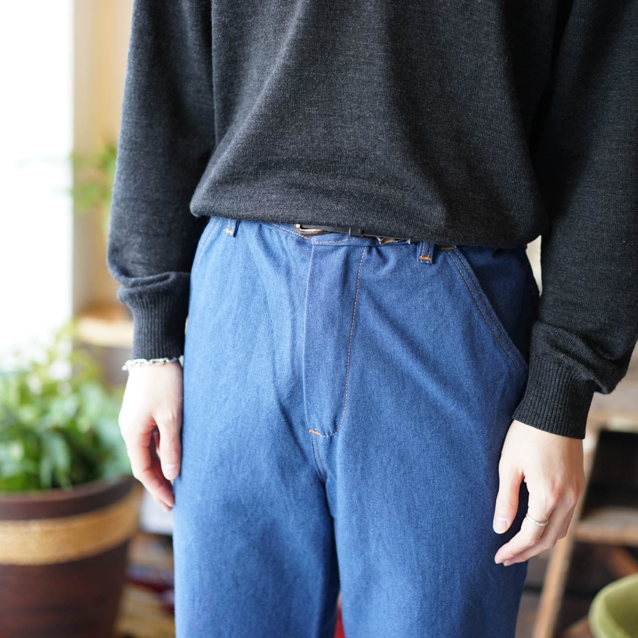 ノーブランドながらもシルエットが美しく、試着後高確率で購入を決めるお客様が多いフレアパンツです。フロントはジップフライです。通年使えるブルーの色味も優秀ポイント◎