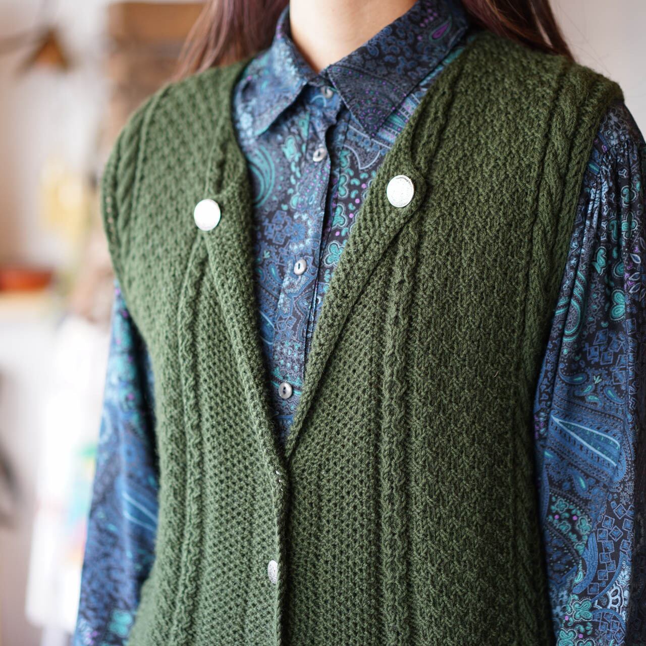 チロル ニット ベスト(カーキ)