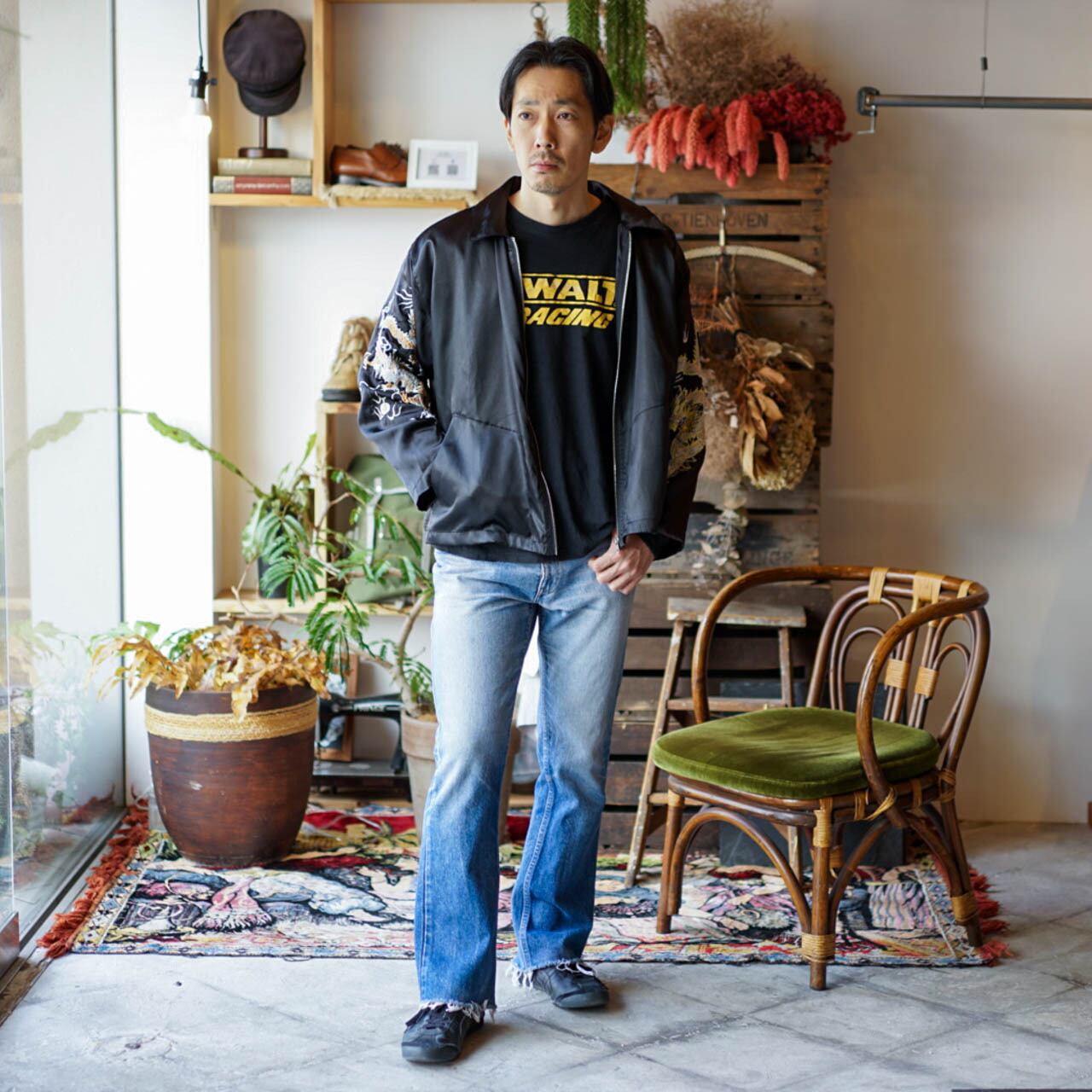 ※当店で扱う商品は古着になります。古着の特性上着用感があるのでご了承ください。尚、ダメージや汚れなどがある場合は商品ページに記載されているのでご確認ください。経年劣化、ダメージ、汚れなどは古着特有の味として楽しんでもらえたら幸いです。