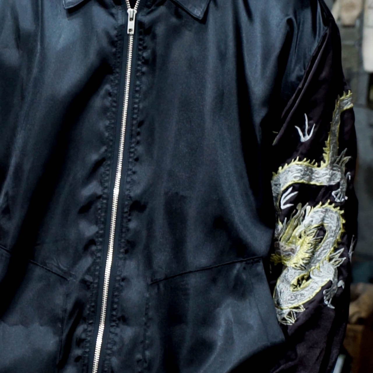 ■刺繍サテンジャケット (袖グレー)