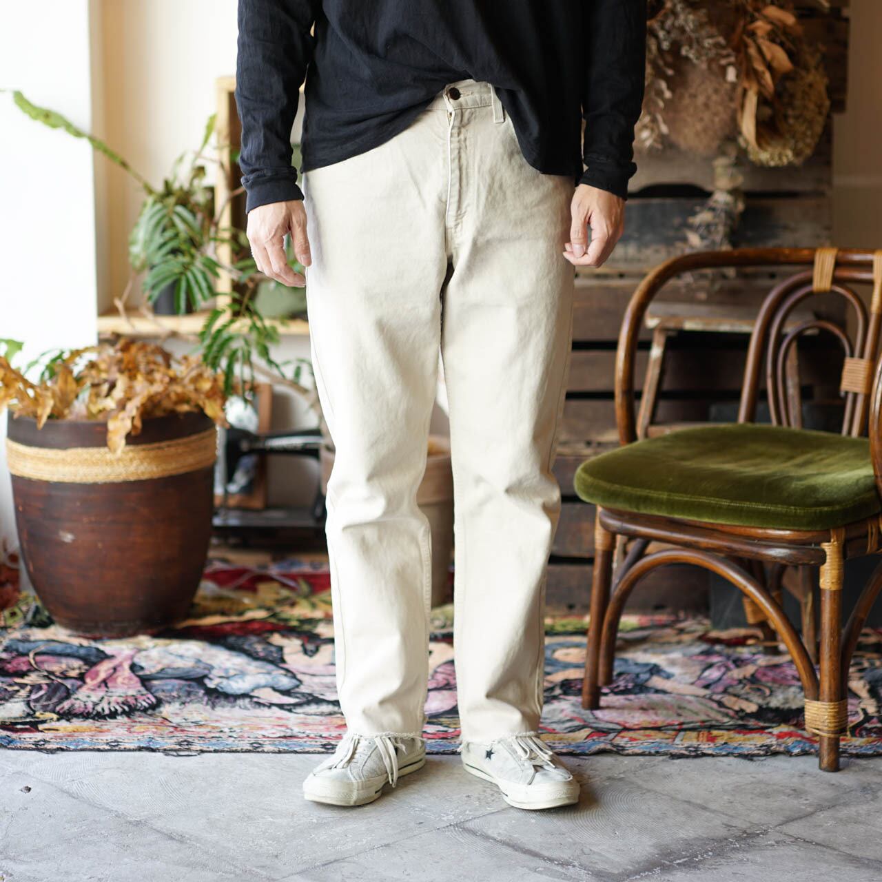 ※当店で扱う商品は古着になります。古着の特性上着用感があるのでご了承ください。尚、ダメージや汚れなどがある場合は商品ページに記載されているのでご確認ください。経年劣化、ダメージ、汚れなどは古着特有の味として楽しんでもらえたら幸いです。