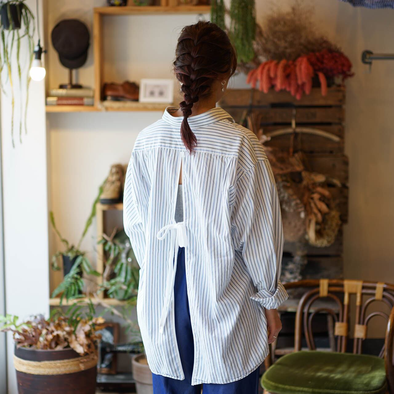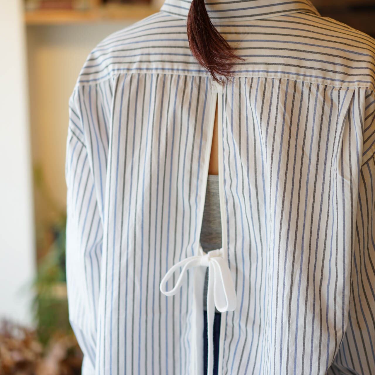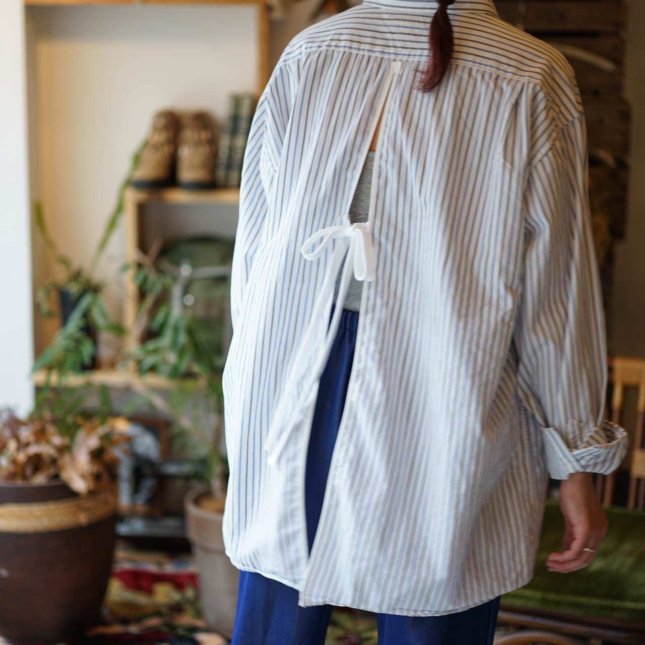 大きめサイズのシャツの背中にスリットを入れ、紐を付けたオリジナル商品です。
