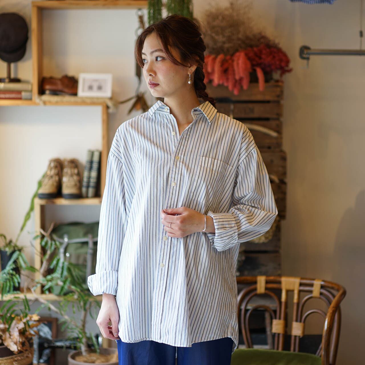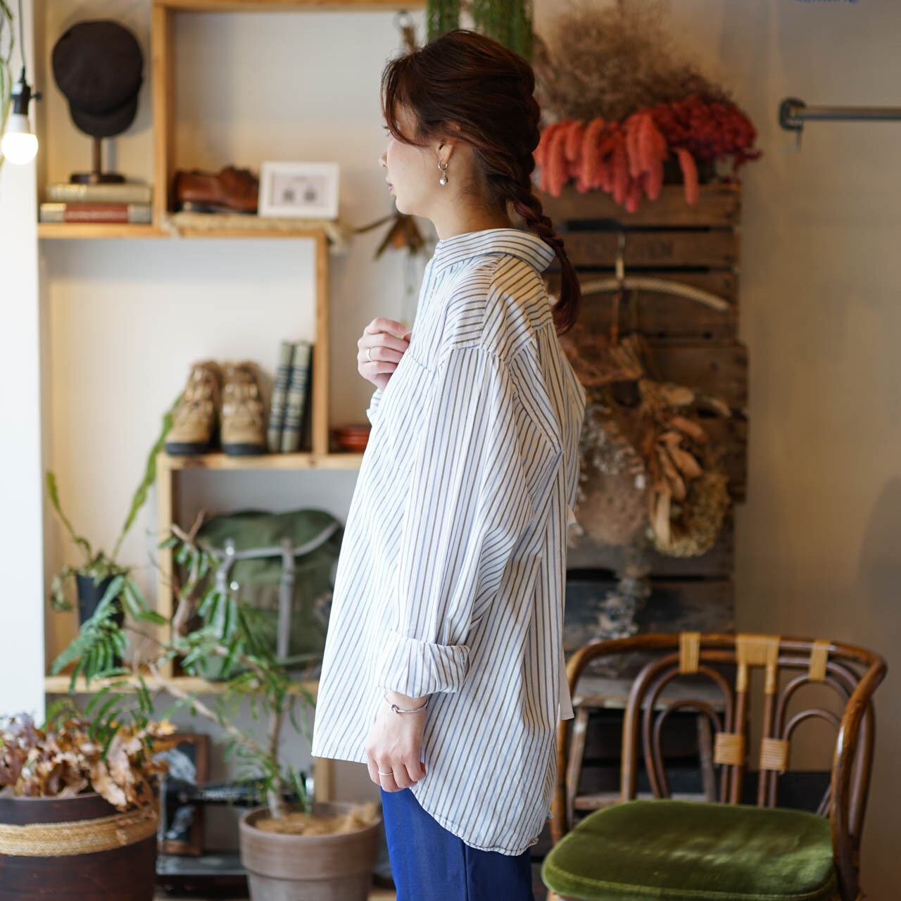 【リメイク】バック スリット シャツ(ホワイトストライプ)