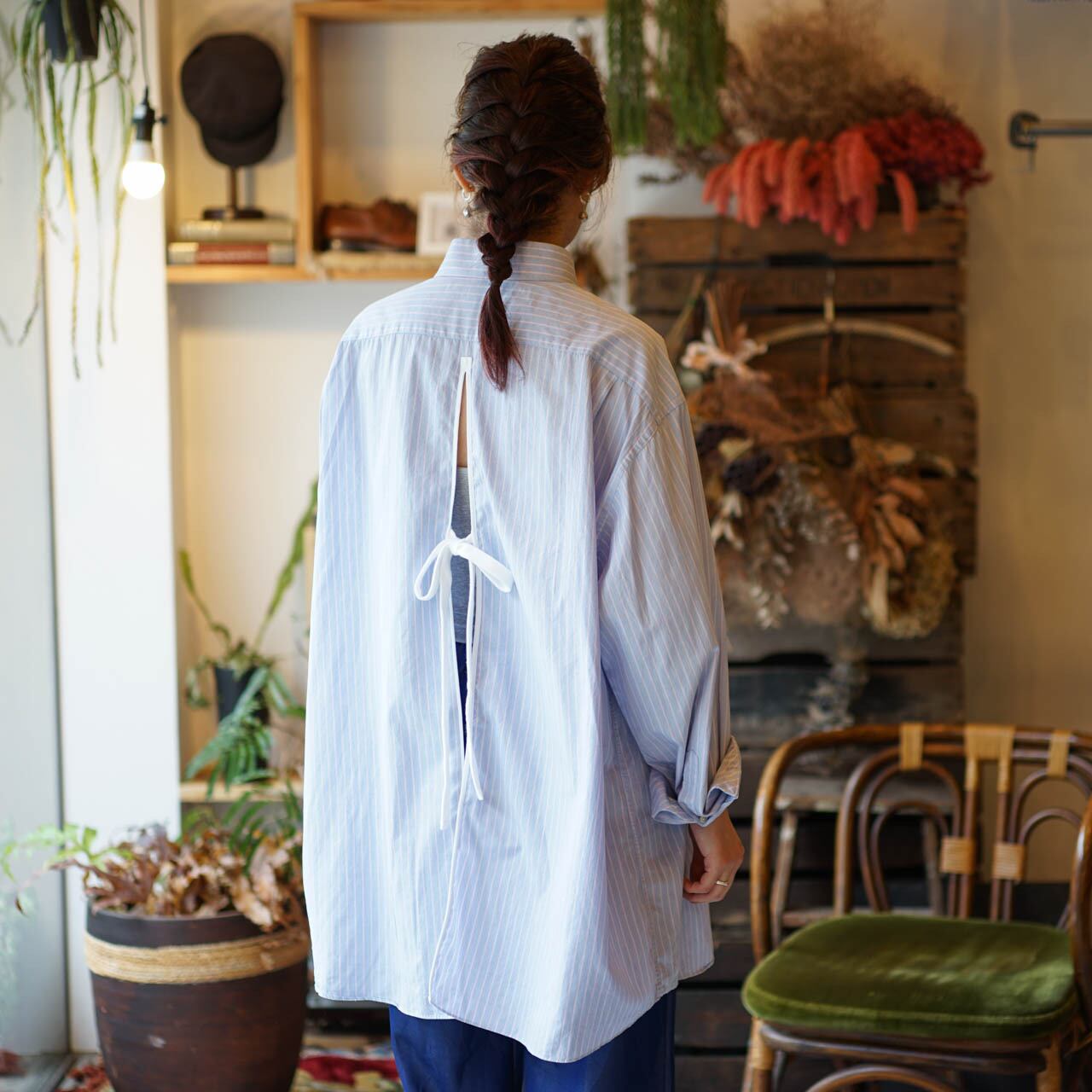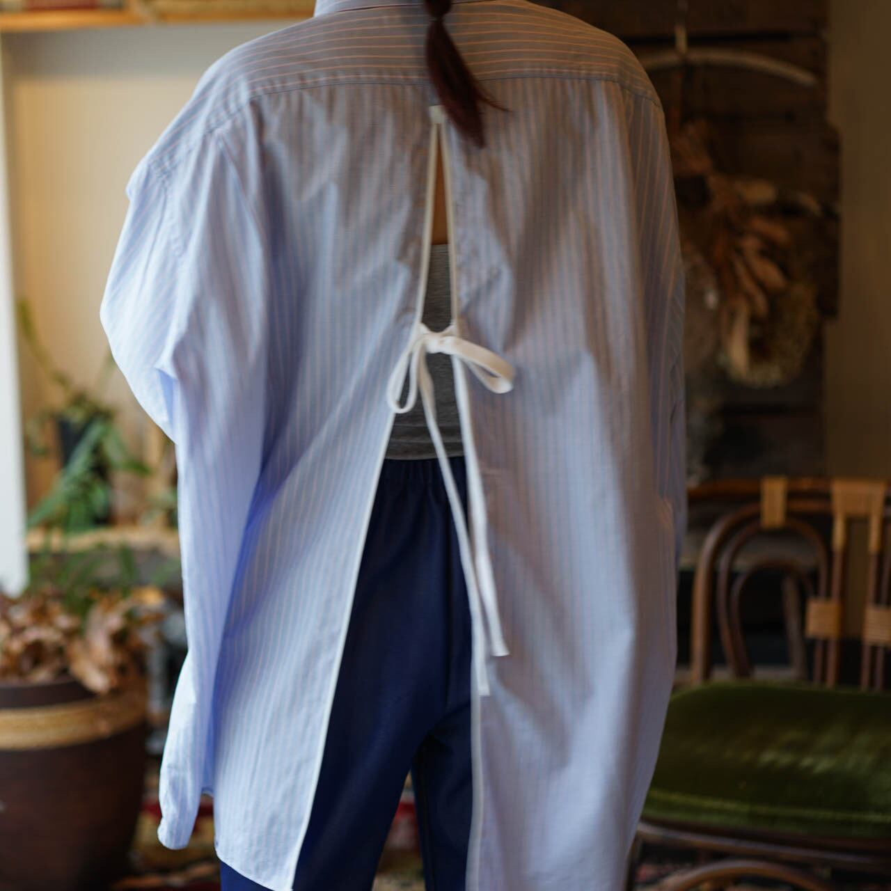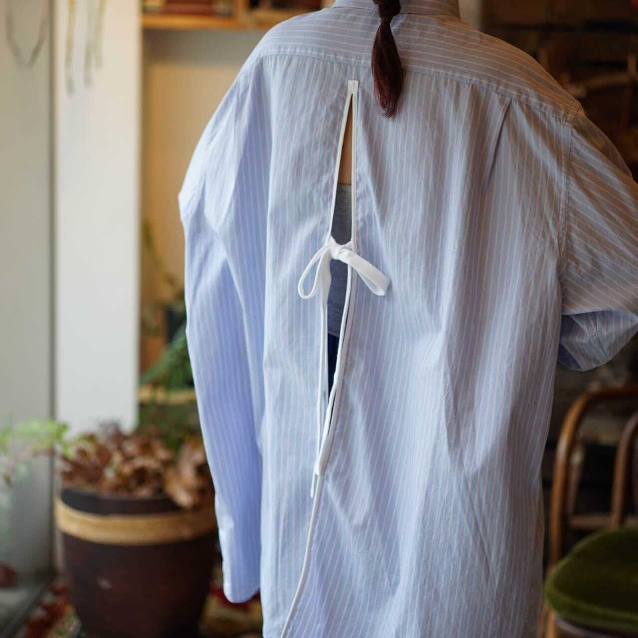 大きめサイズのシャツの背中にスリットを入れ、紐を付けたオリジナル商品です。