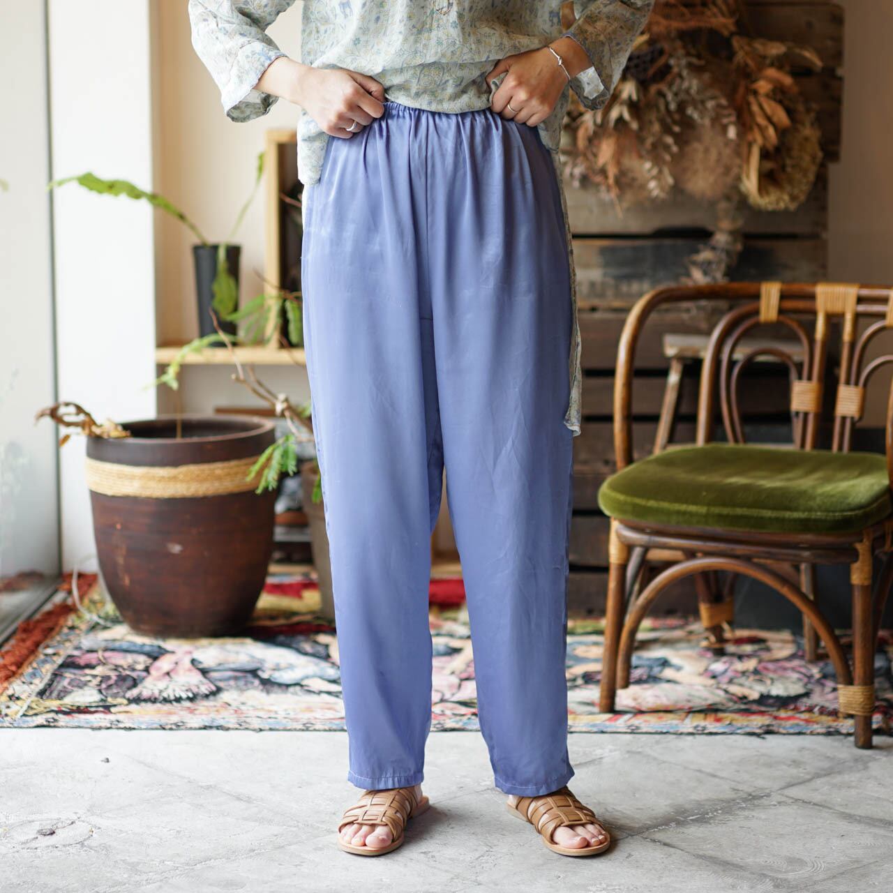 サテンの光沢が綺麗な1本。シャツワンピースやチュニック丈のトップスと合わせてレイヤードアイテムに。