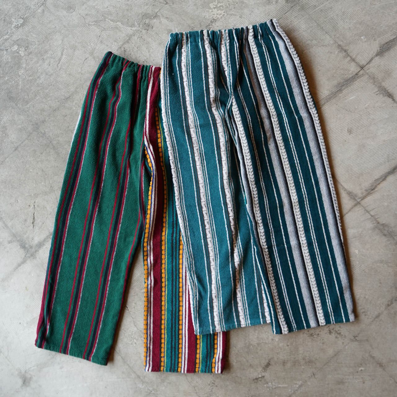 古着のパイルガウンを使ったリメイク商品。左右にポケット付き。ウエストは内側に紐が付いていてサイズ調節できます。シンプルになりがちな春夏のコーディネートにアクセントを。