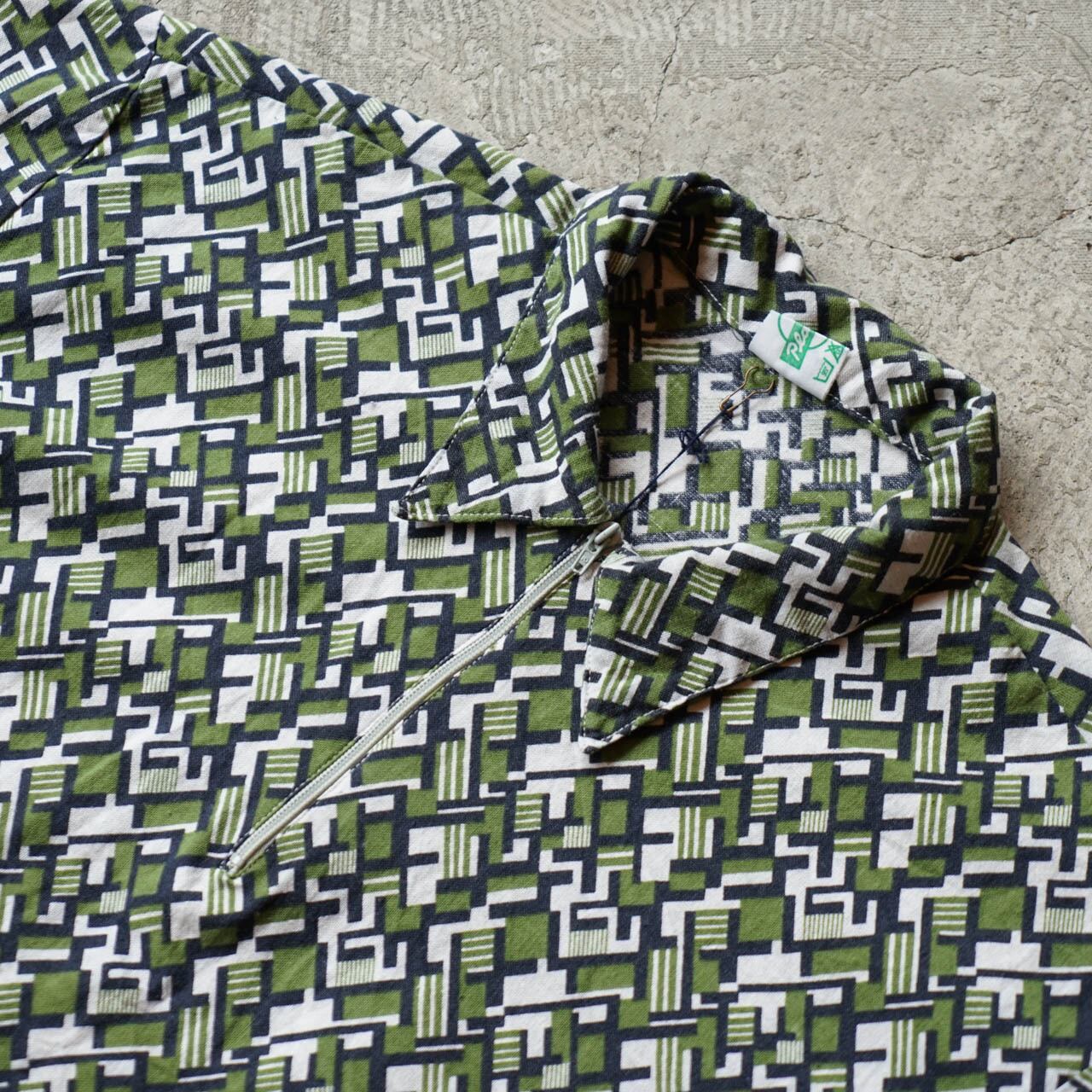 ハーフジップでかぶりのタイプのシャツです。幾何学模様で渋い雰囲気◎