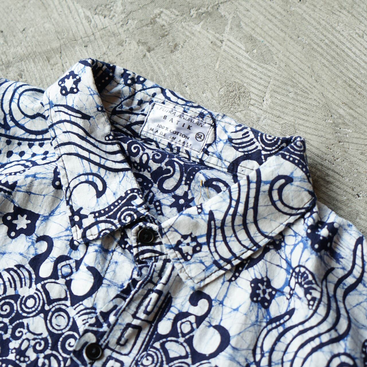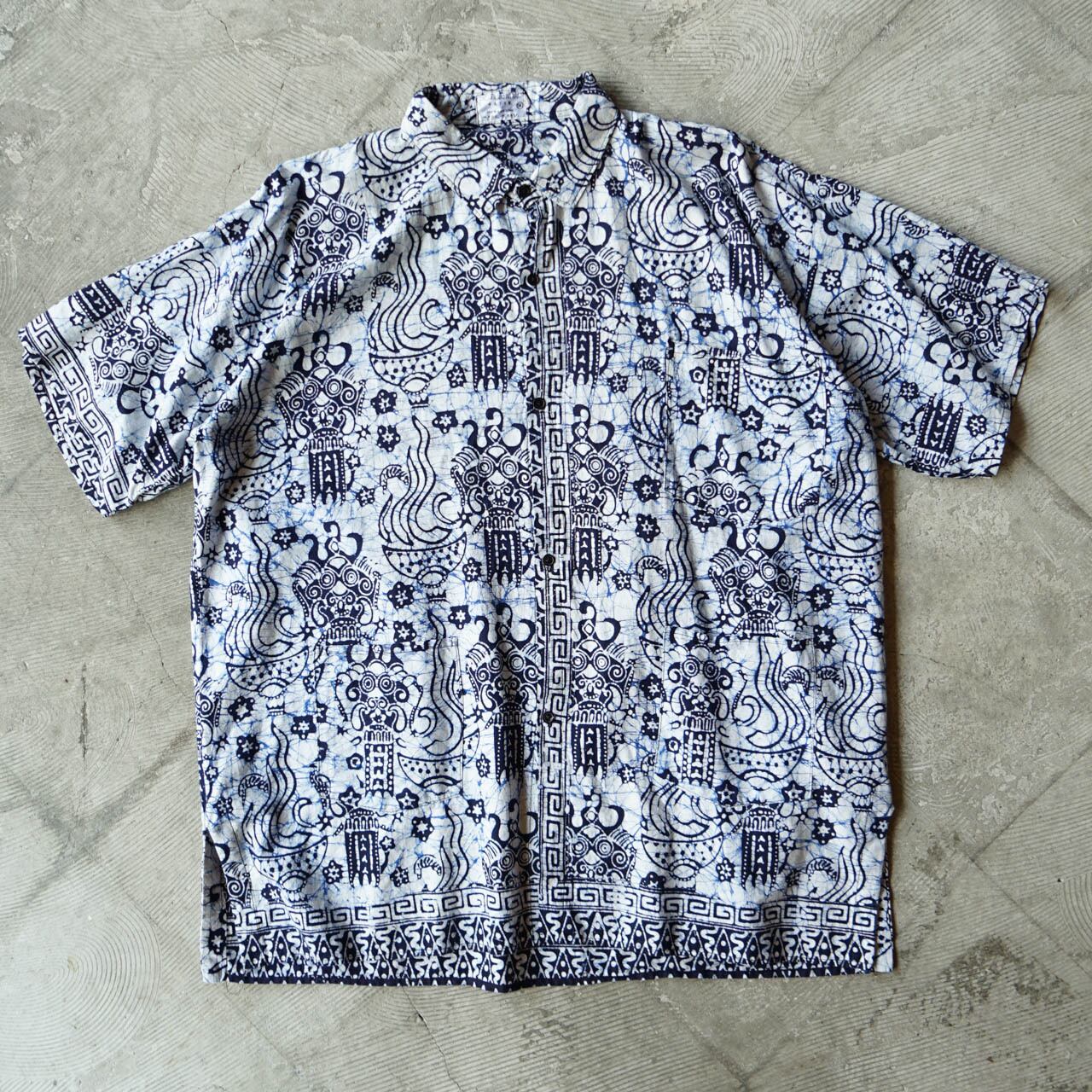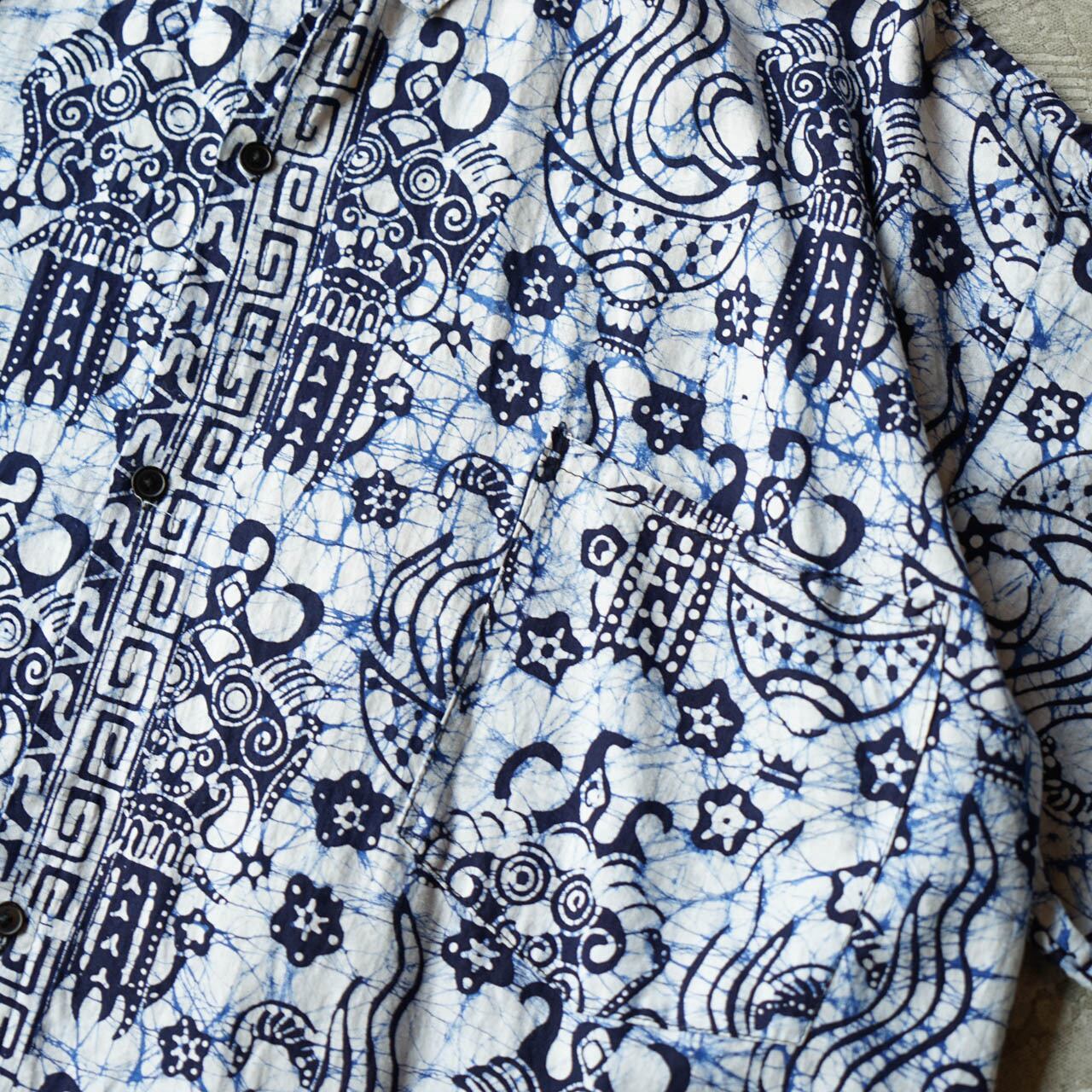 アフリカン バティック 半袖 シャツ(ネイビー × ホワイト)