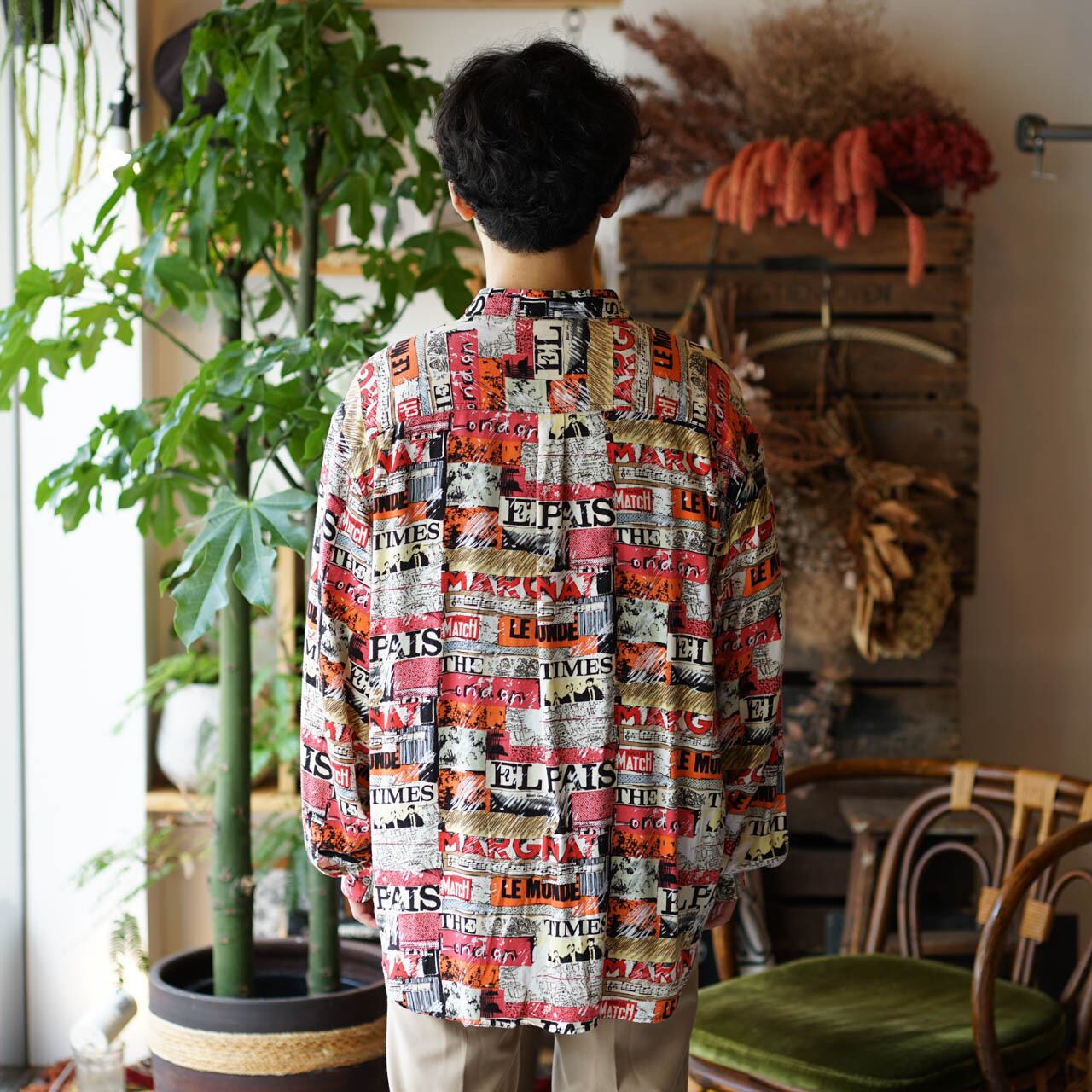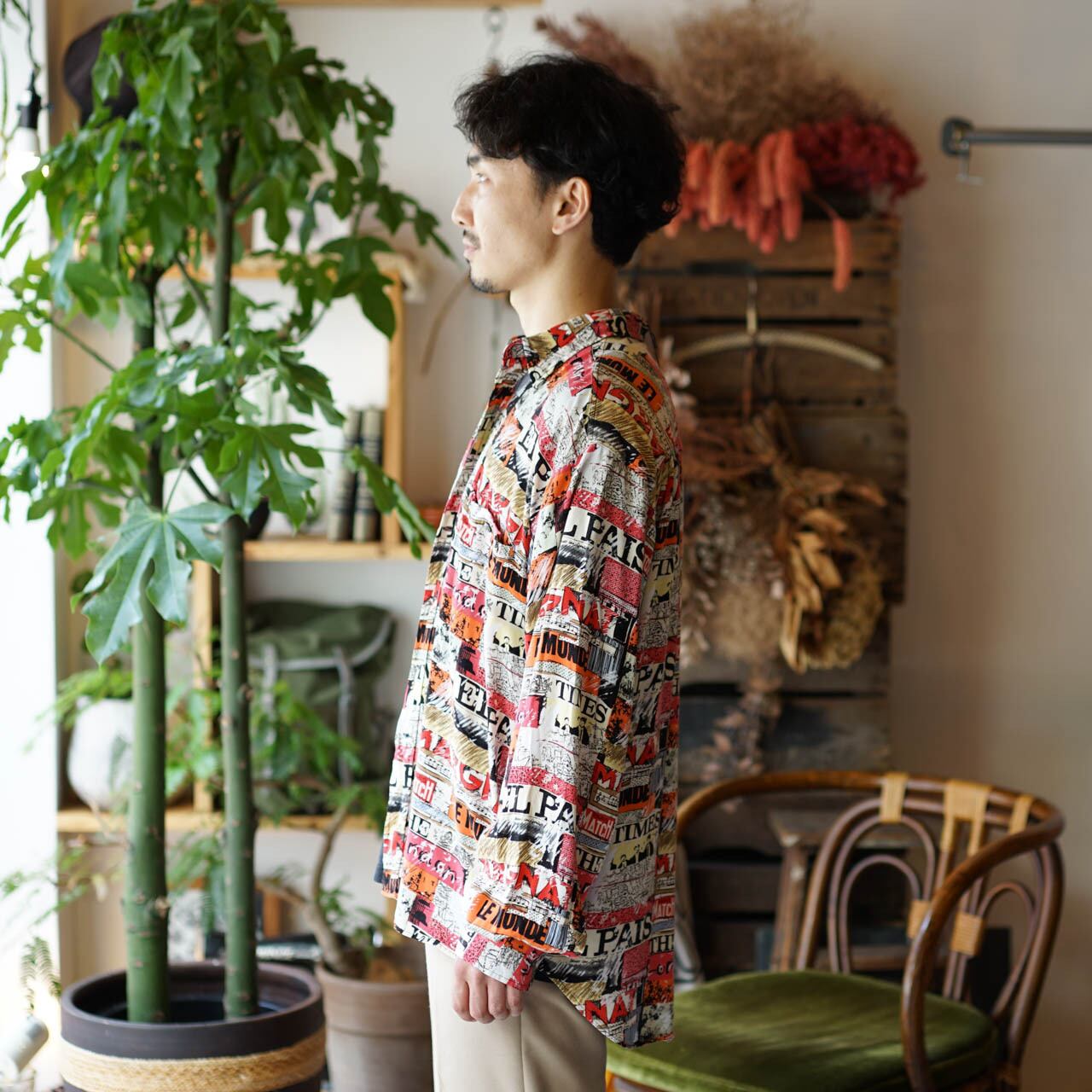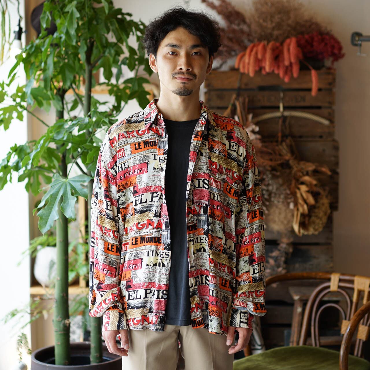 レーヨン 柄 長袖 シャツ(レッドトーン)