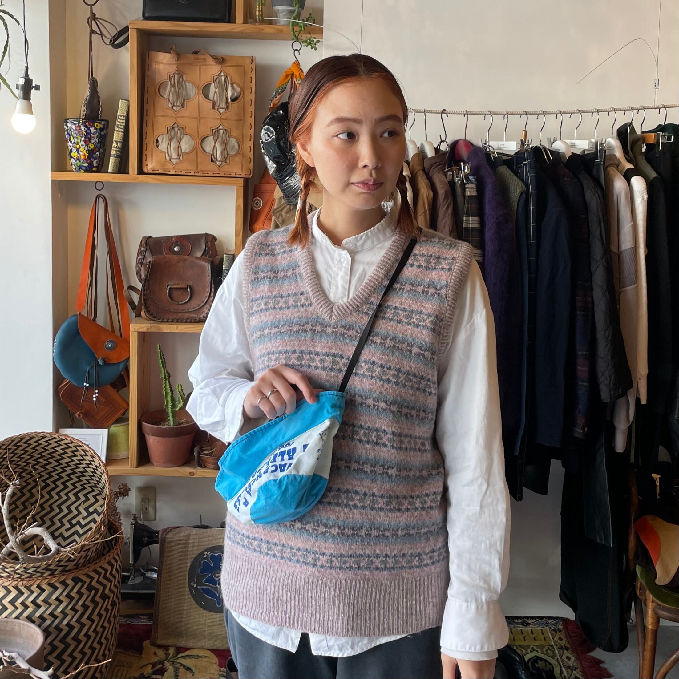 古着のバケットハットを使ったオリジナルリメイク商品。財布やスマホ、鍵など最低限の持ち物を入れるのに適したサイズ感です。コーディネートのアクセントにいかがでしょうか◎