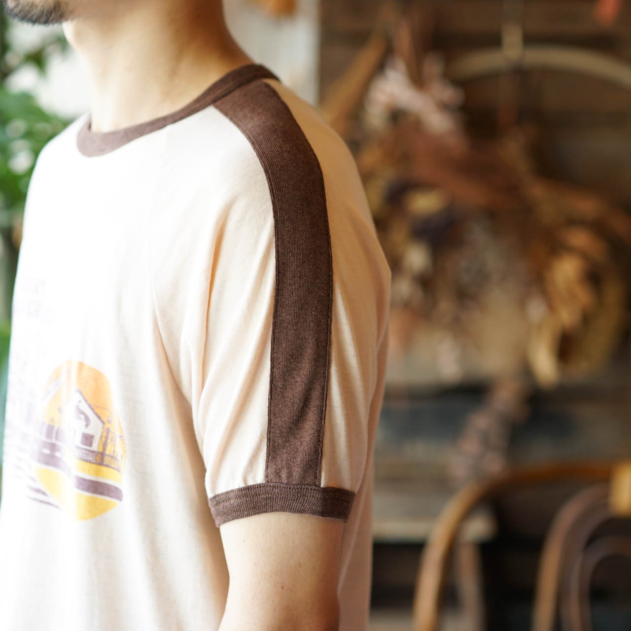 1976年に開園された遊園地“マリオット・グレート・アメリカ”のリンガーTシャツ。プリントもさることながら、配色が素敵な1枚です。