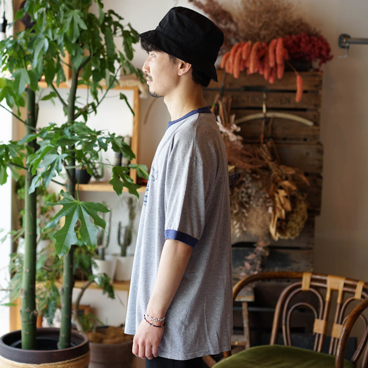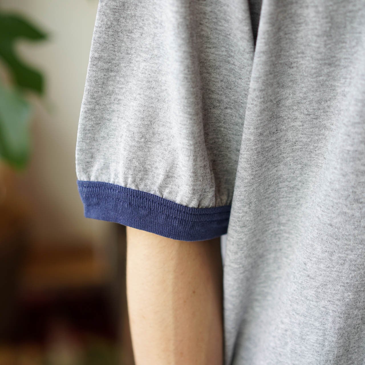 リンガー プリント Tシャツ(グレー×ネイビー)