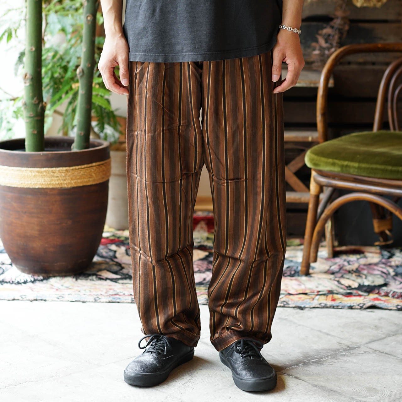 サテン パジャマ ストライプ パンツ (ブラウン)