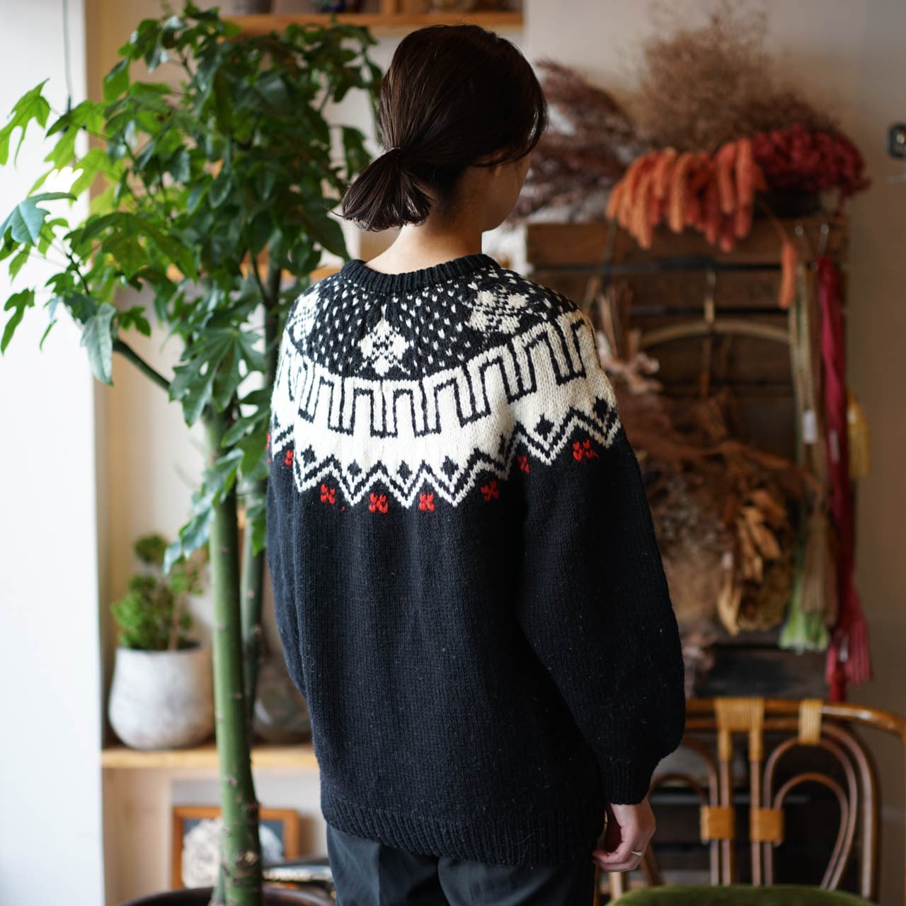 ブラックベースに白や赤の配色が際立つノルディックセーター。柄物は子供っぽい…と躊躇しがちな方もこんな控えめカラーのものなら挑戦しやすいのではないでしょうか。