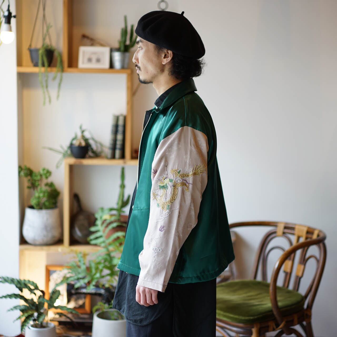 リメイク 刺繍 サテン ジャケット(グリーンB)