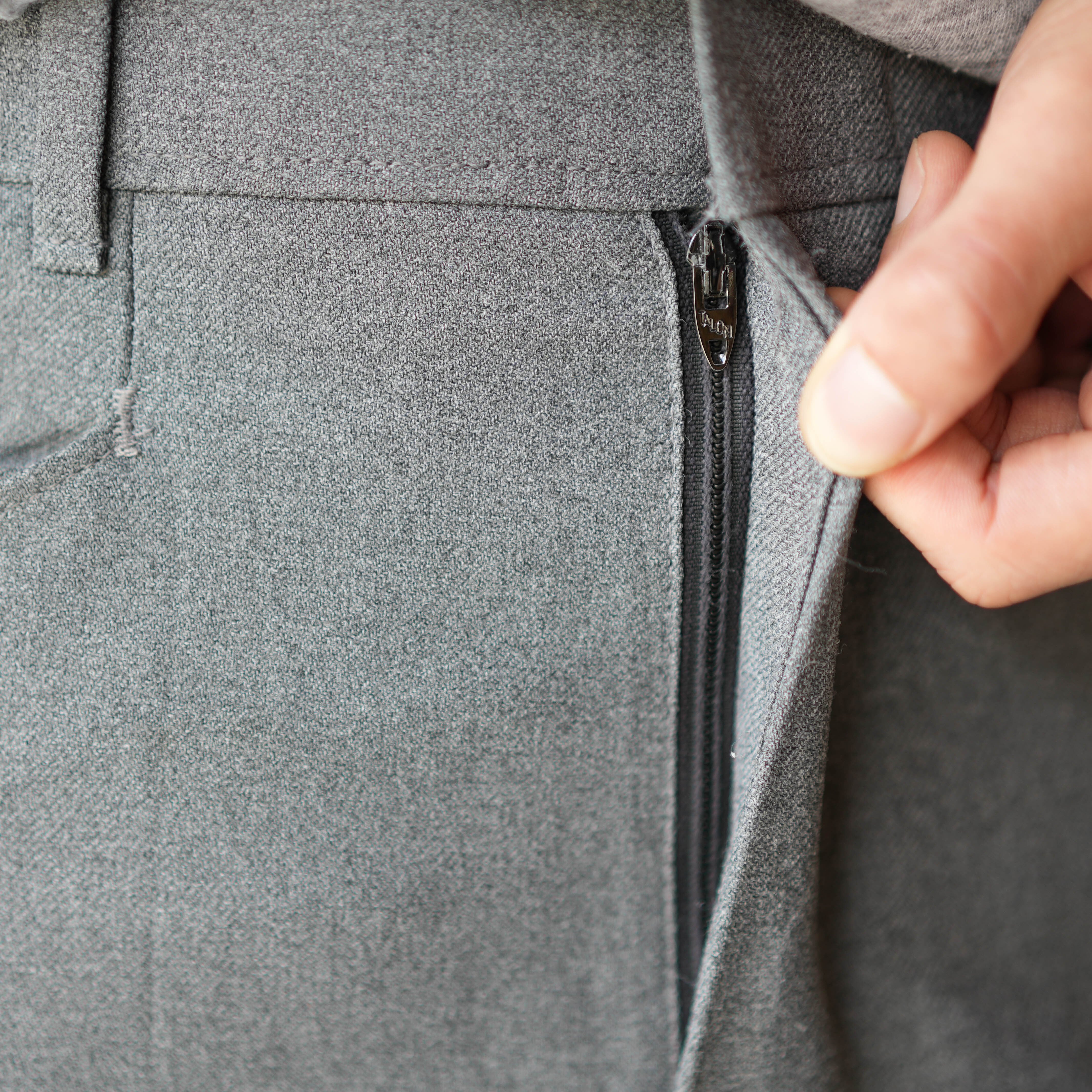 センタープレスがきれい目な印象を与えてくれるデザイン。タロンジップが使われているのも魅力的です。