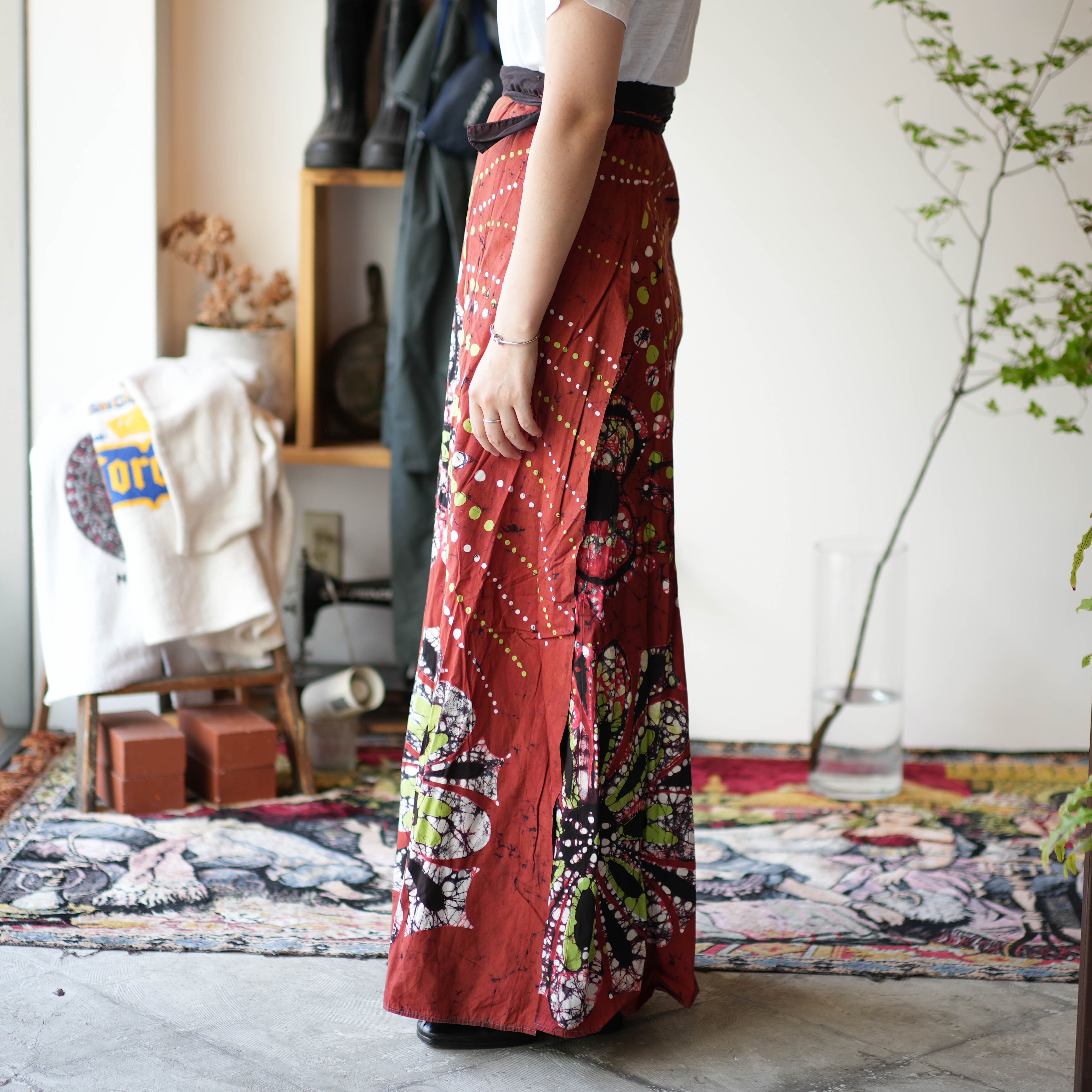 エスニック プリント ラップスカート 巻きスカート(レッド × グリーン)