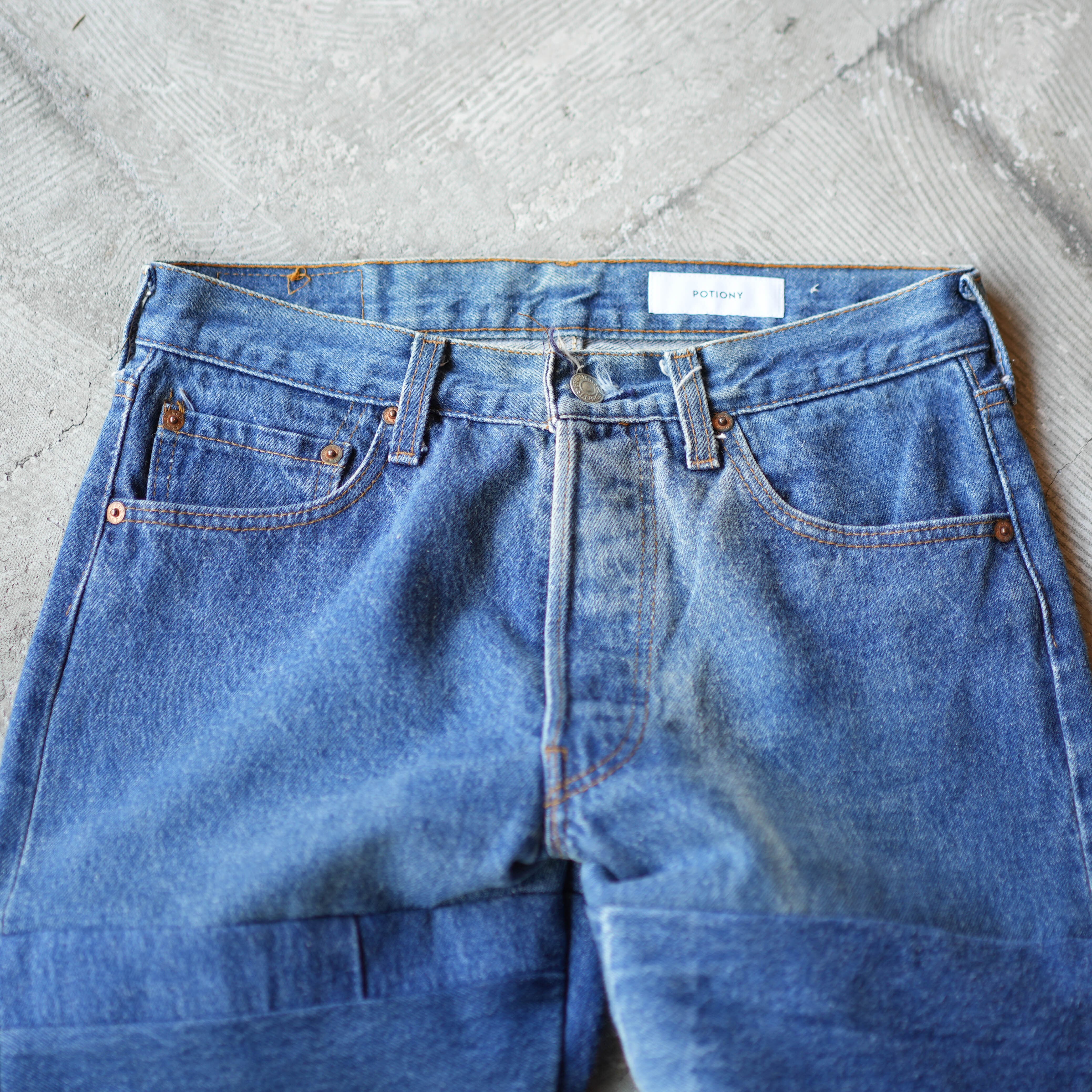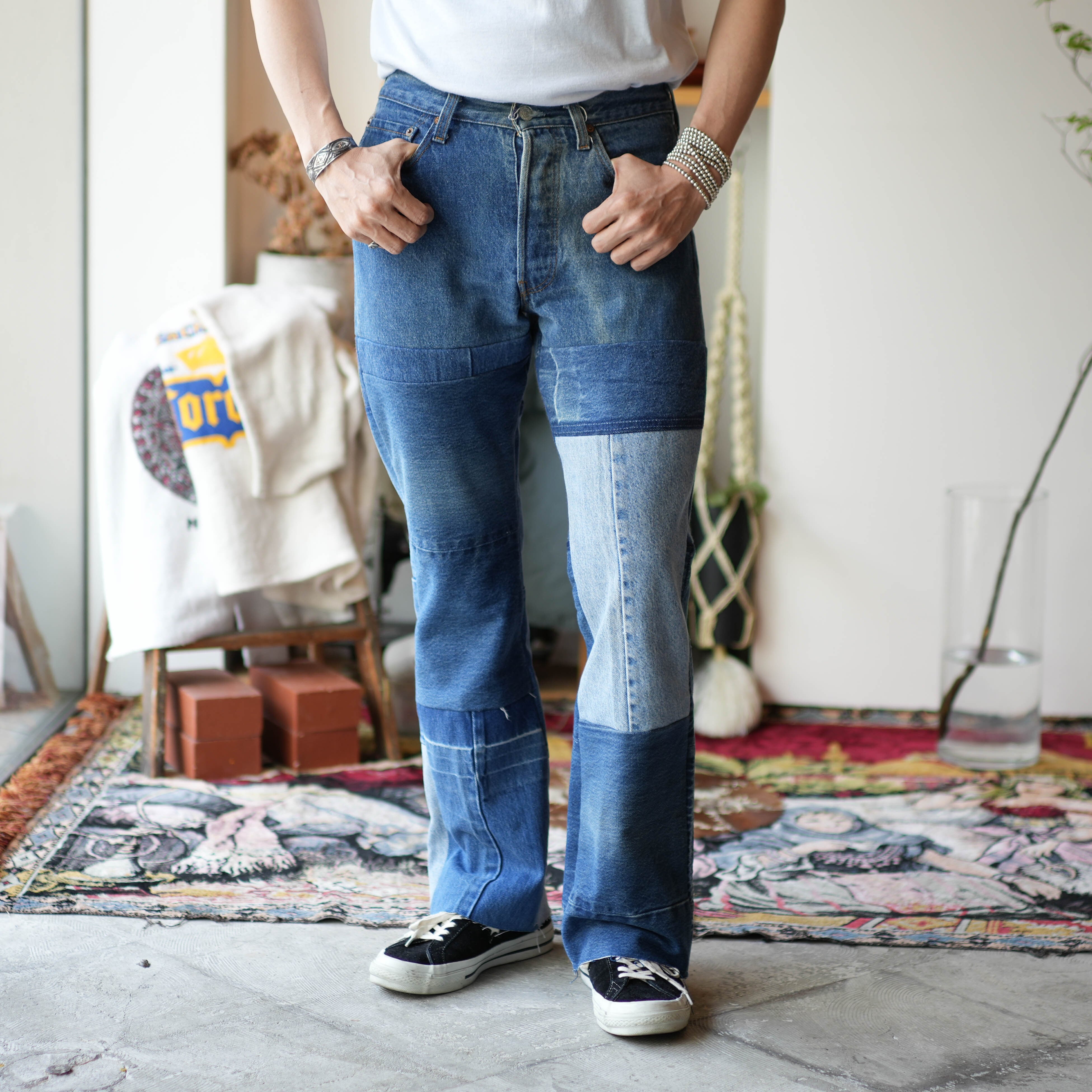 リメイクブランド「POTIONY」から、Levi's(リーバイス) のヴィンテージデニムをなんと「4本分」も使用した贅沢なパッチワークデニムの登場です。
