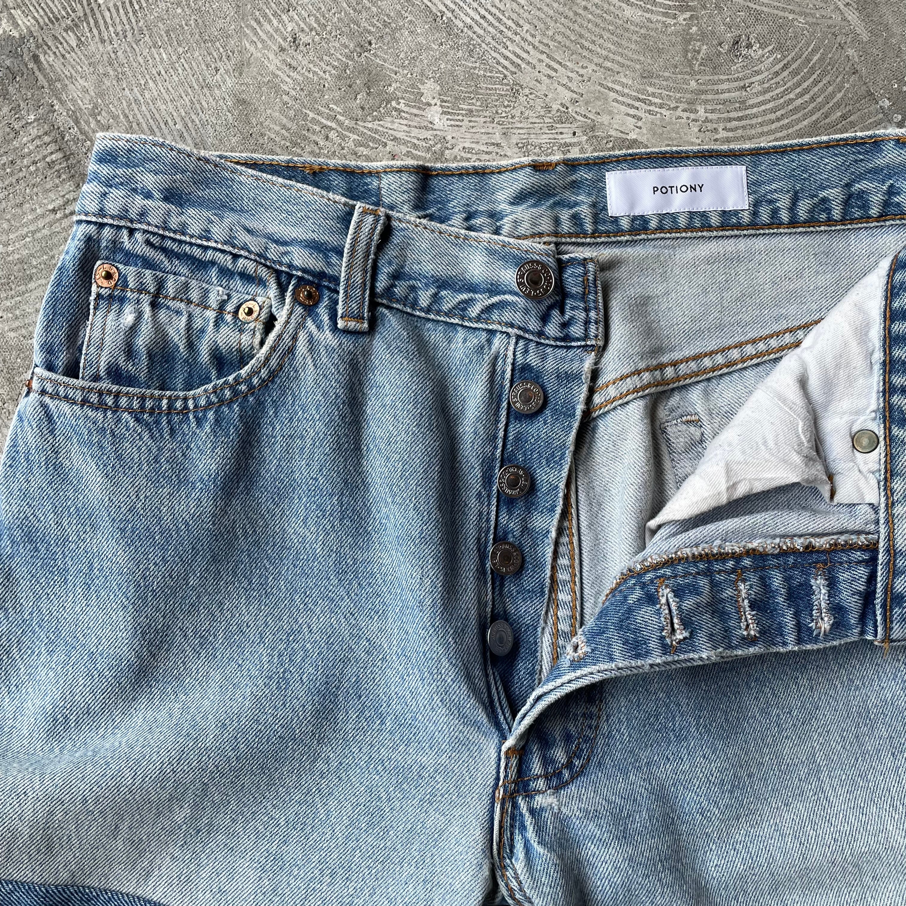 リメイクブランド「POTIONY」から、Levi's(リーバイス) のヴィンテージデニムをなんと「4本分」も使用した贅沢なパッチワークデニムの登場です。
