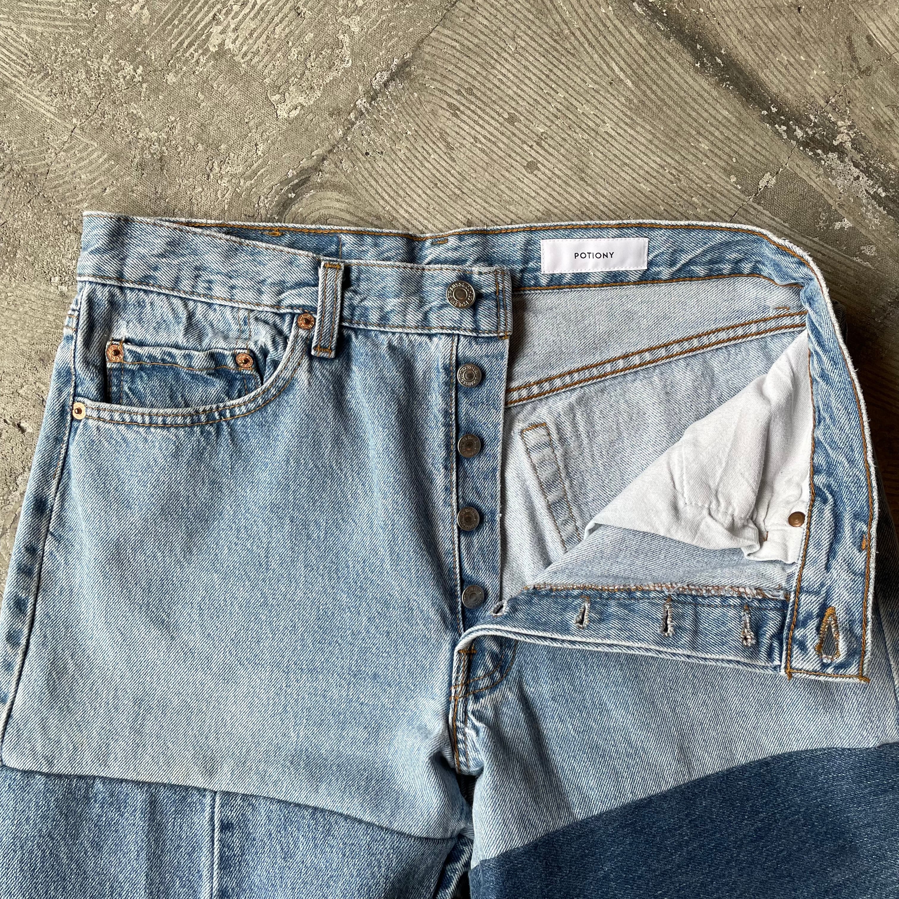 リメイクブランド「POTIONY」から、Levi's(リーバイス) のヴィンテージデニムをなんと「4本分」も使用した贅沢なパッチワークデニムの登場です。