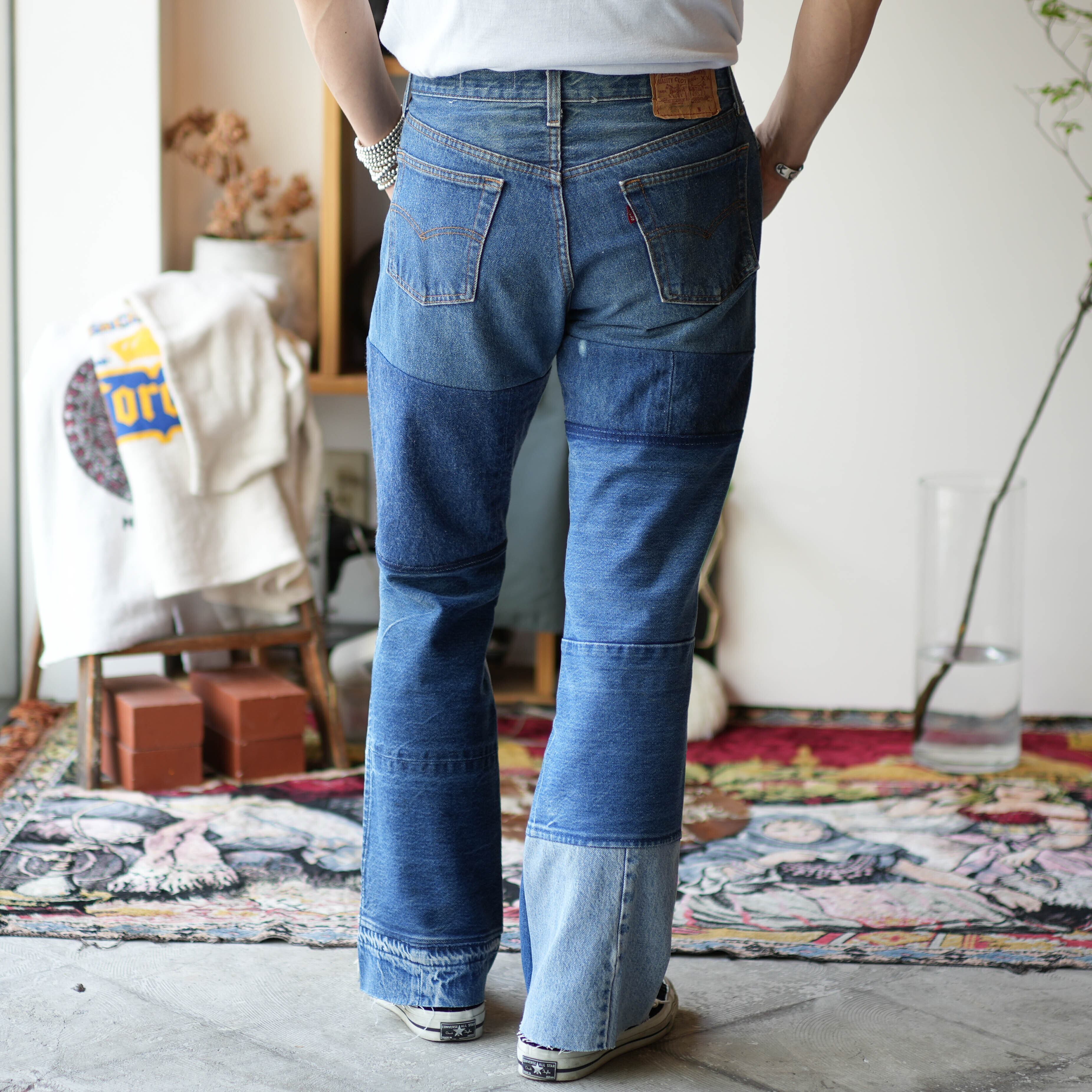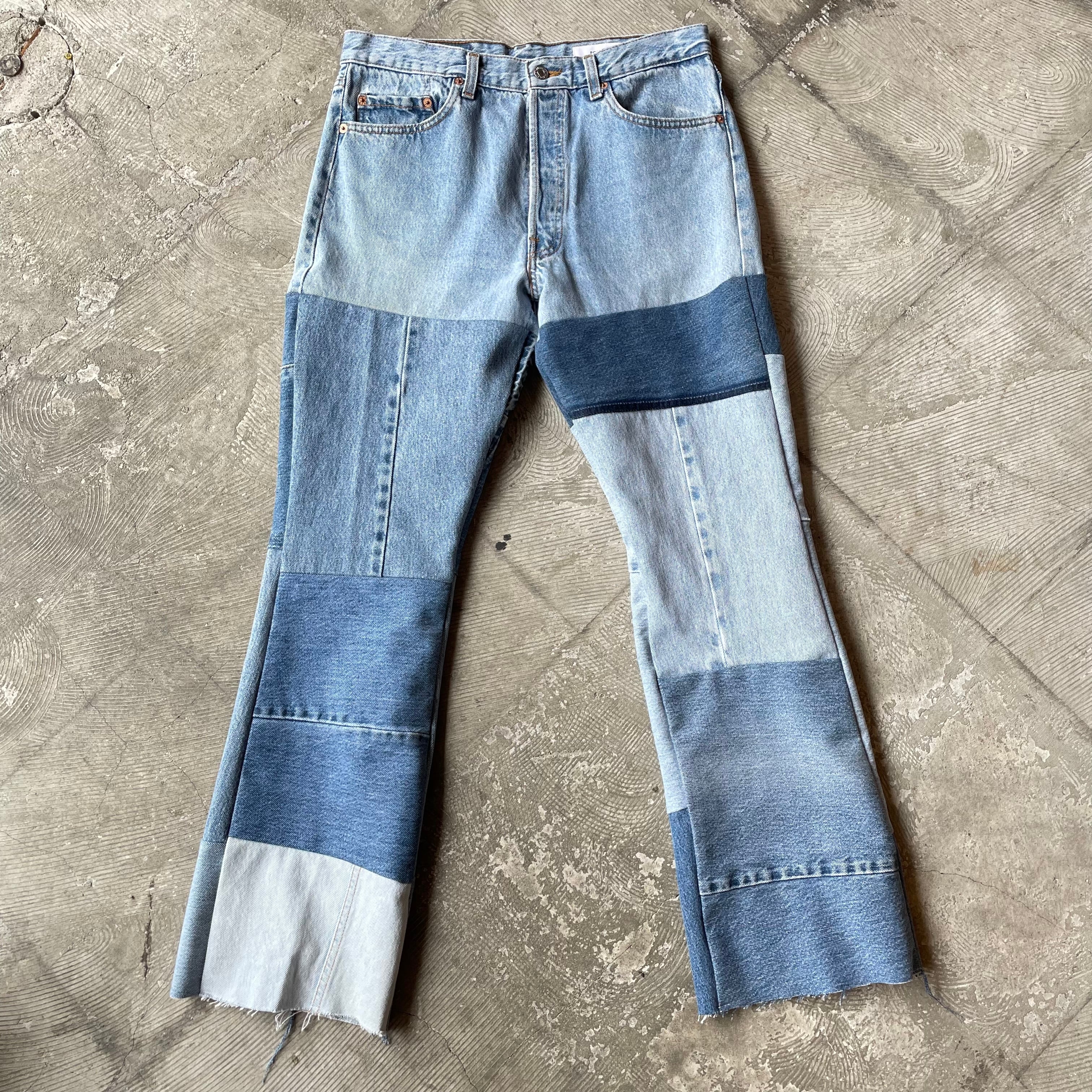 【人気につき再販】Levi's リメイク パッチワークフレアデニムパンツ 34インチ「POTIONY」