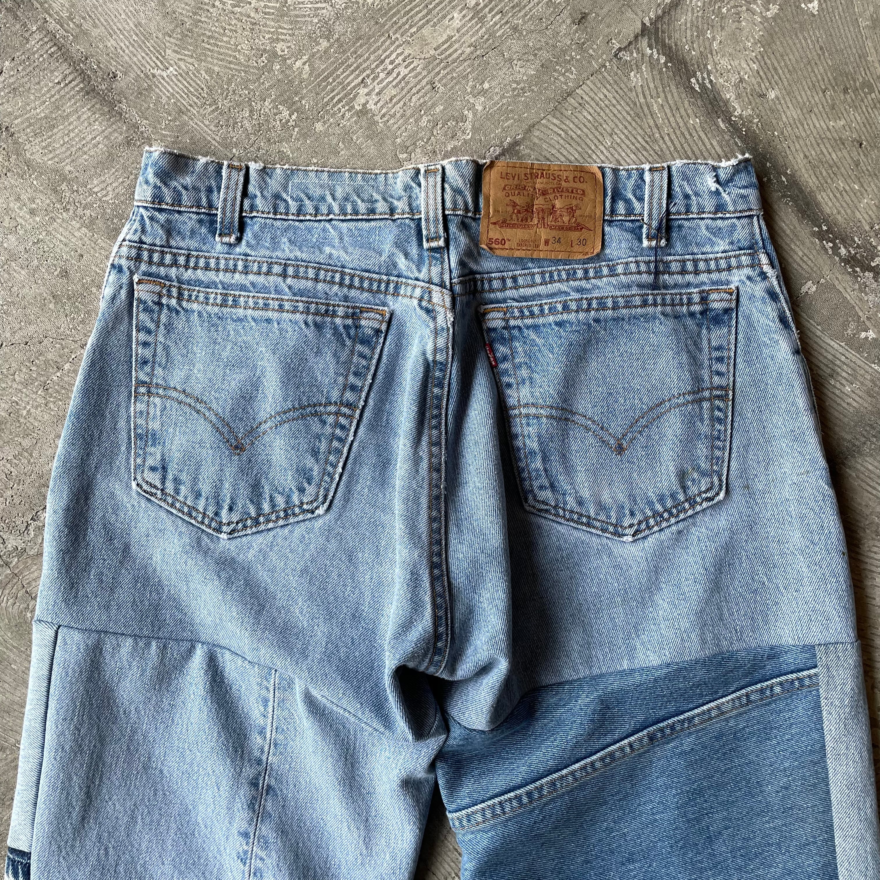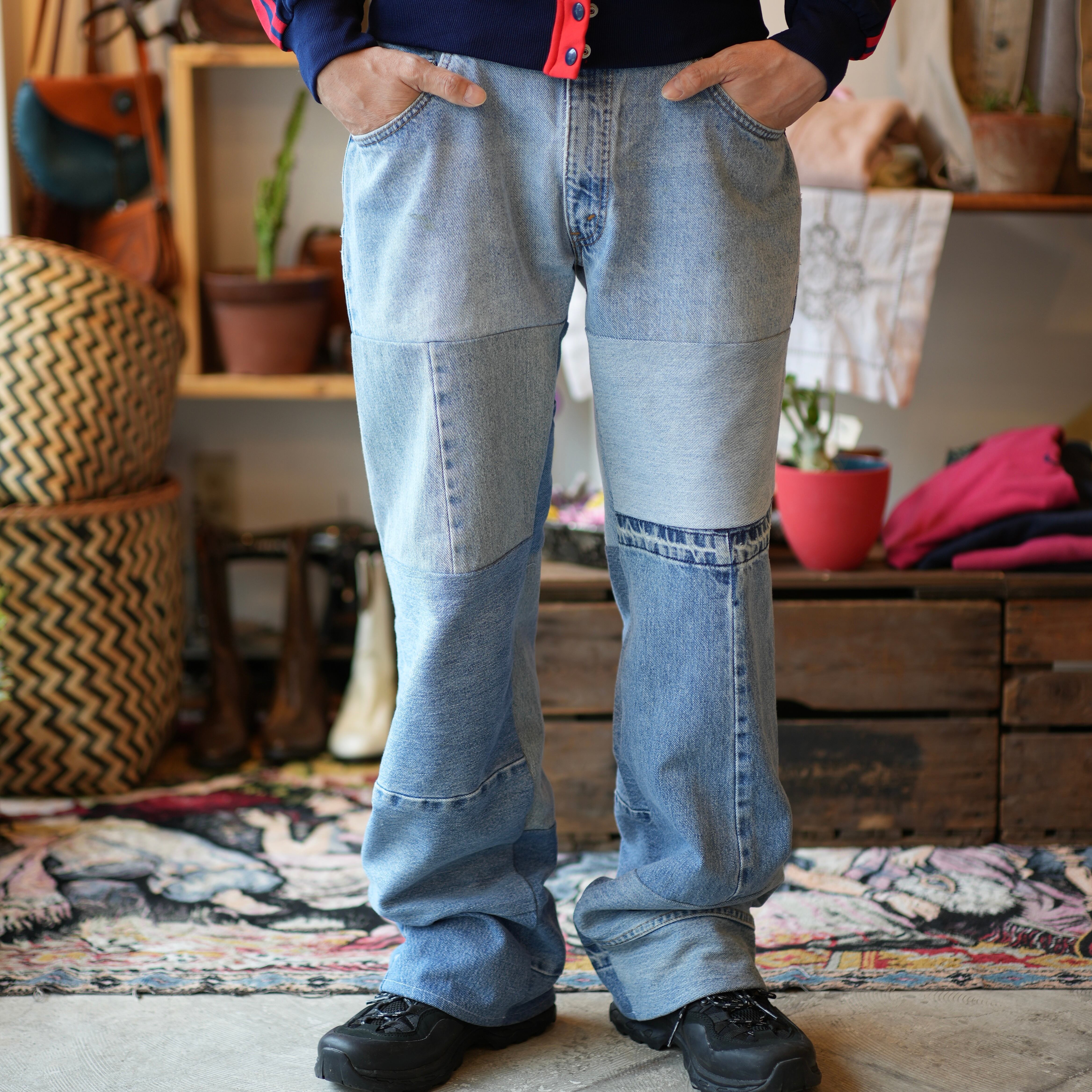 Levi's 34インチ リメイク パッチワーク デニム パンツ ワイドストレート「POTIONY」